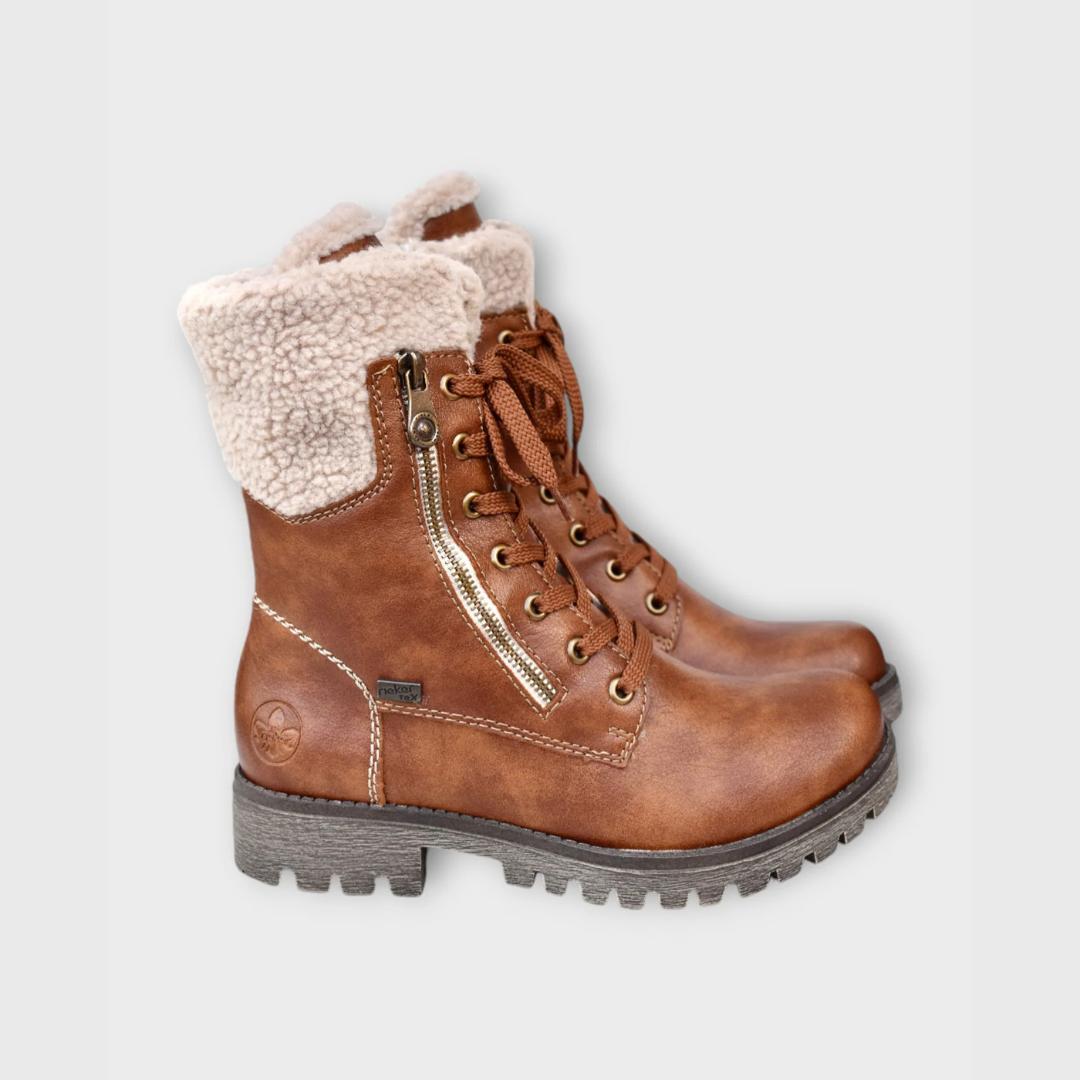 Botas Femininas em Couro Sintético com Forro de Lã e Fecho de Zíper