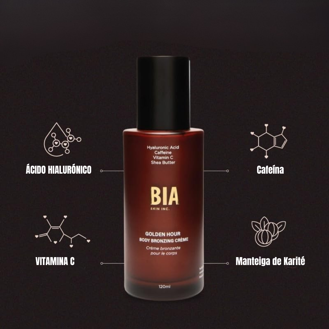 Conquista uma pele dourada, hidratada e luminosa com o nosso kit exclusivo de bronzeador e iluminador corporal.