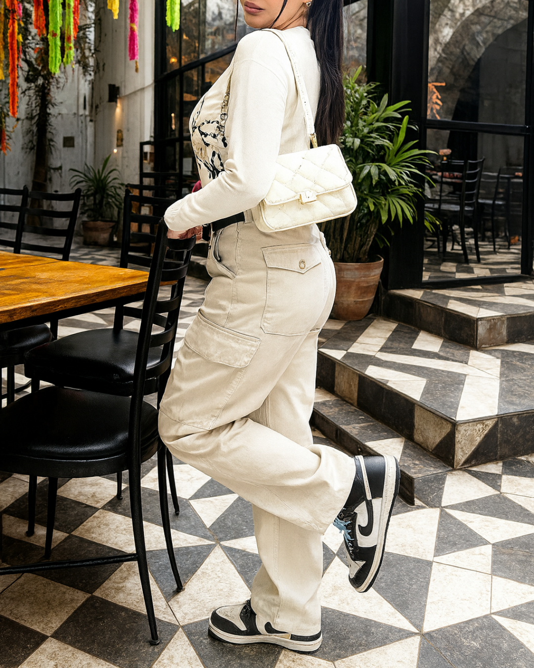 Estas calças estão equipadas com múltiplos bolsos funcionais nas laterais e ao longo das pernas. Estes bolsos não só adicionam um toque estético distintivo, como também são práticos para transportar todos os teus objetos essenciais, o que as converte numa opção ideal para o dia a dia ou para viagens.