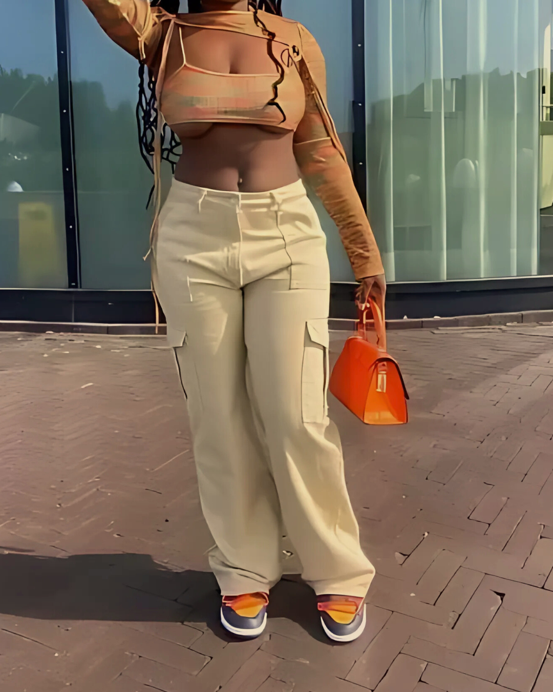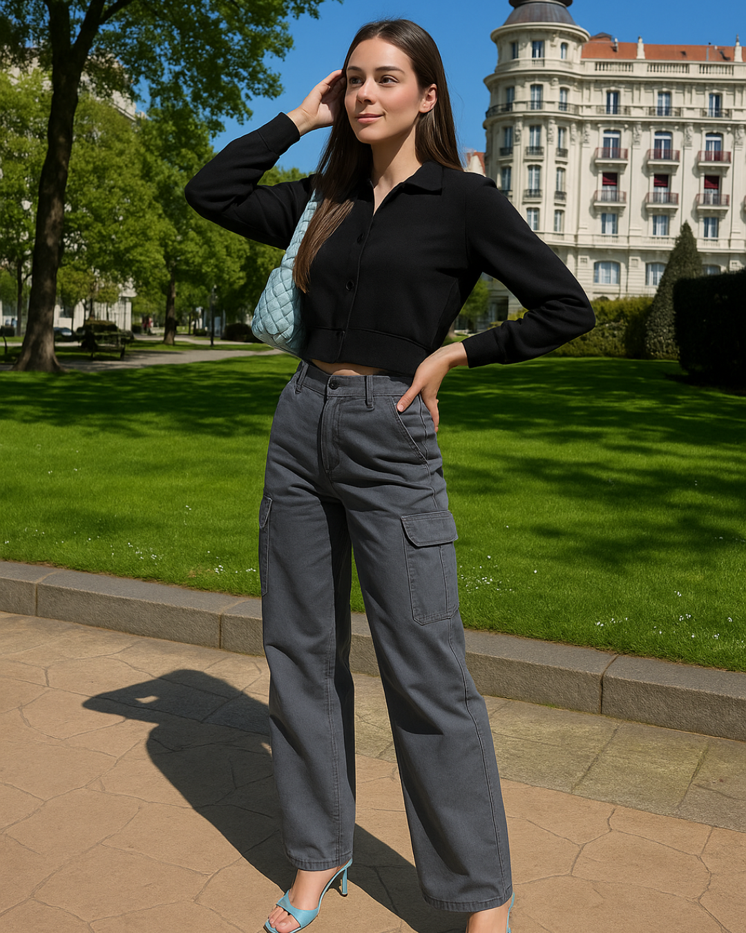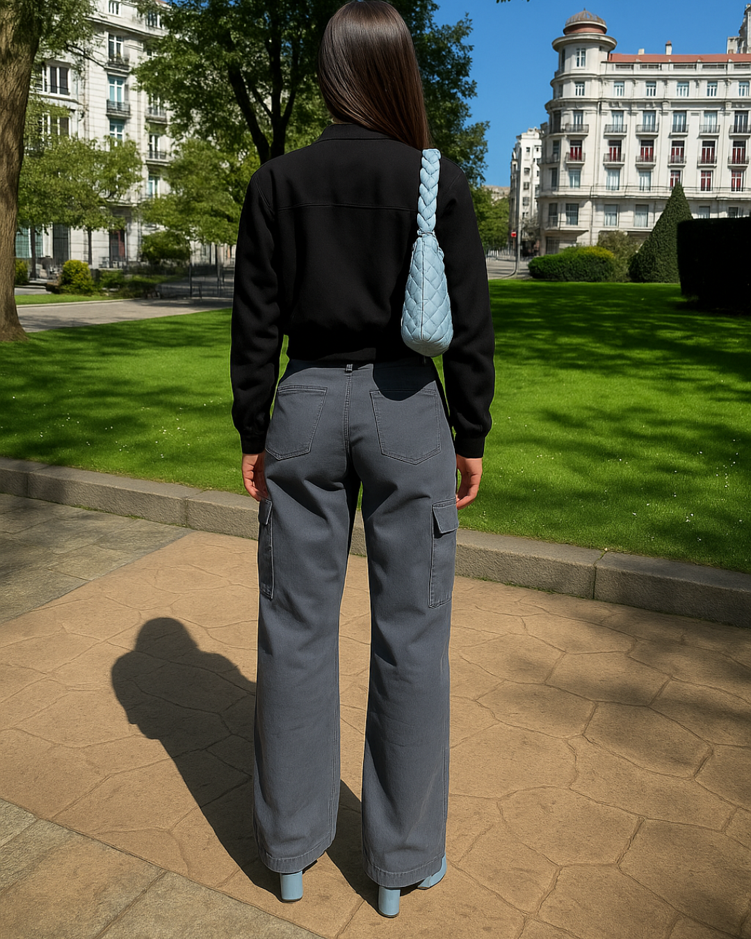 O design da peça evoca as tendências da moda das décadas de 90 e 2000, com detalhes distintivos como as costuras e os bolsos amplos. Esta inspiração vintage confere-lhes um atrativo intemporal, permitindo que se tornem um elemento básico no teu guarda-roupa, que nunca passará de moda.