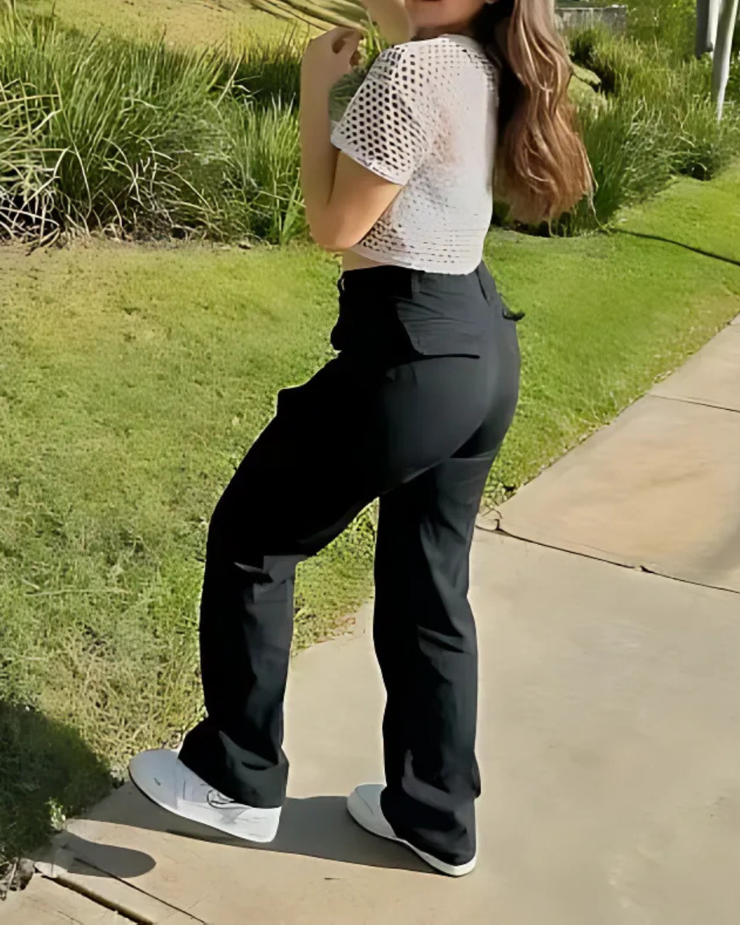 Calças Cargo de Ajuste Reto e Regulável para Mulher