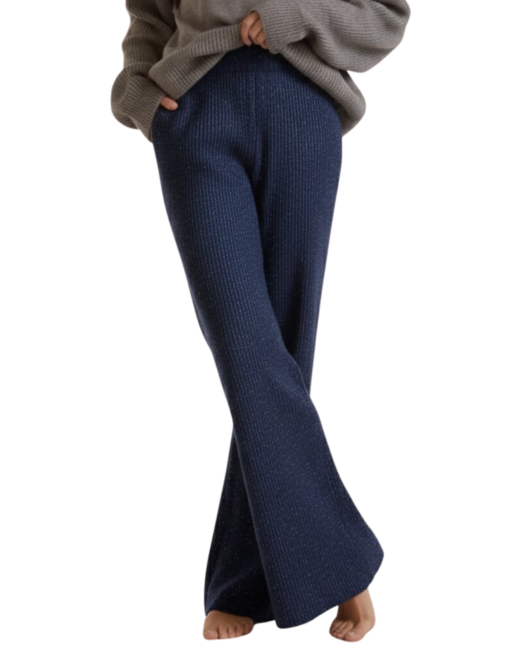 Calças de Perna Larga com Toque de Brilho para Mulher