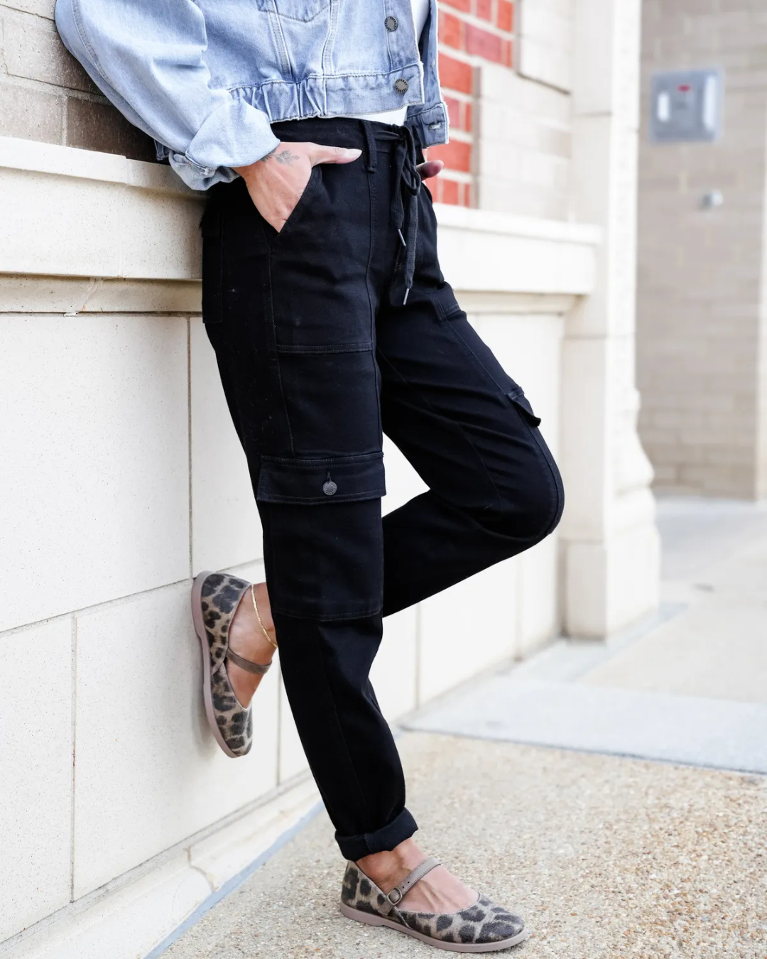 Calças Desportivas de Cintura Subida com Punhos de Carga para Mulher