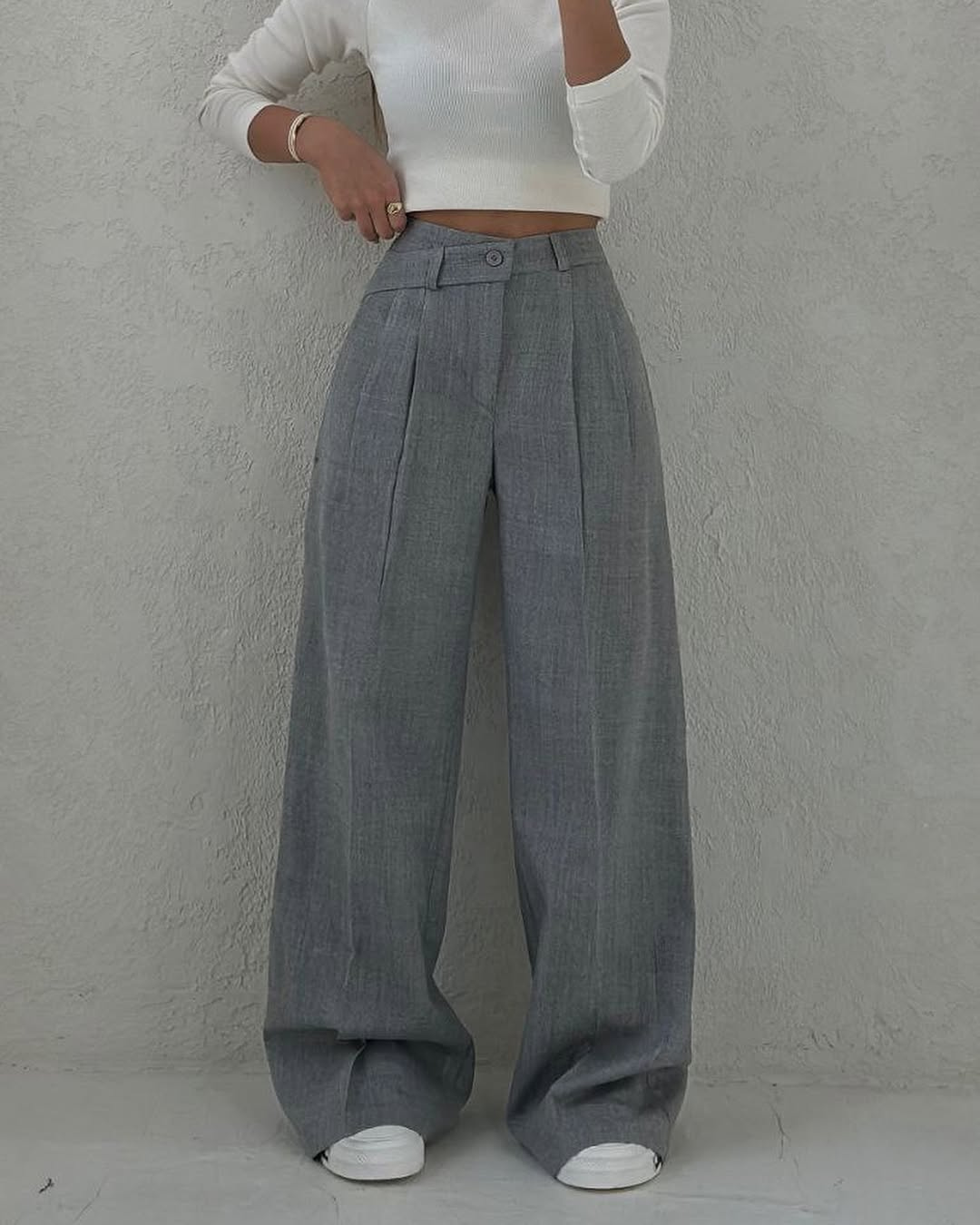Calças largas de estilo clássico com um design casual e elegante
