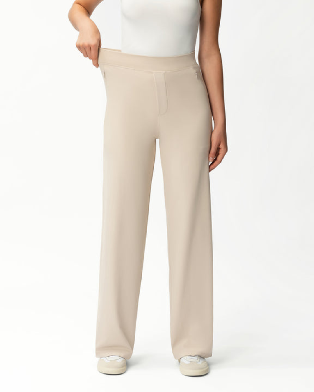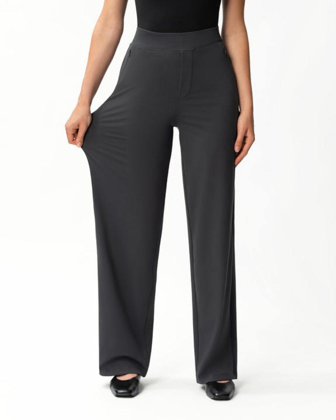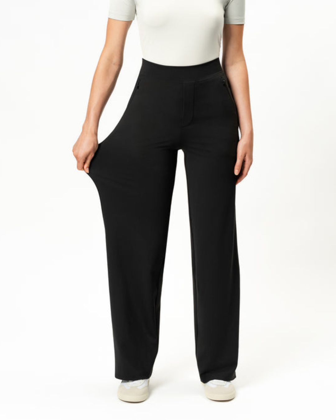 Calças Rectas Relaxadas e Elásticas para Mulher