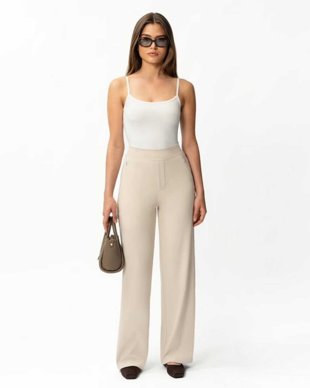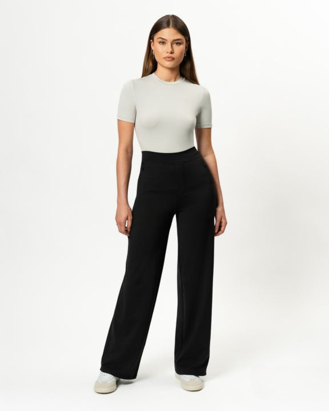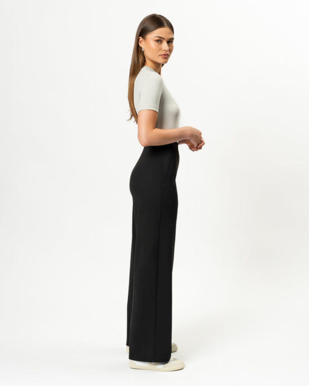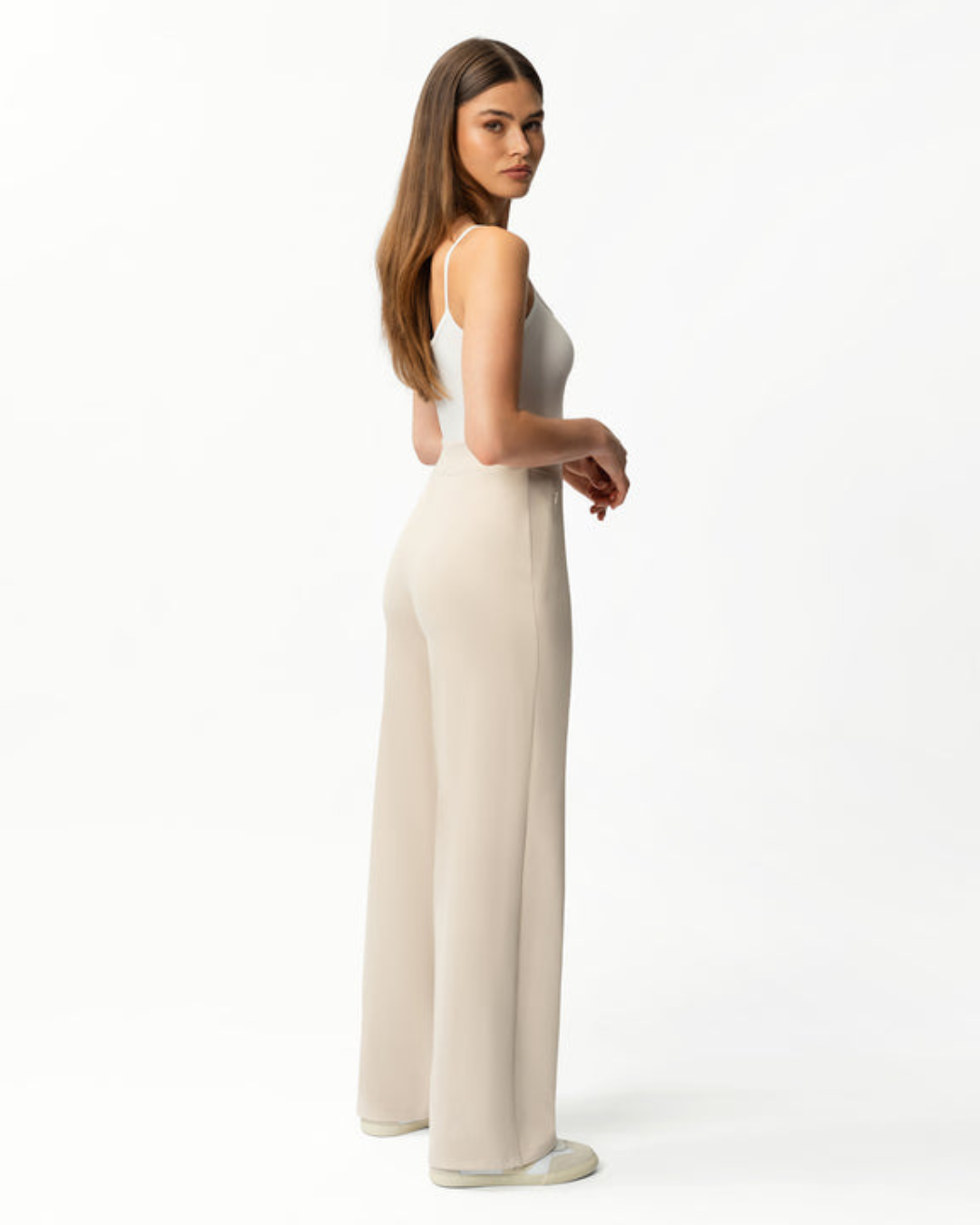 Calças Rectas Relaxadas e Elásticas para Mulher