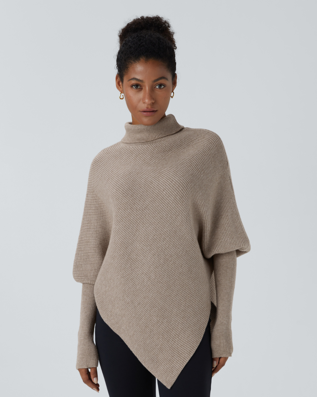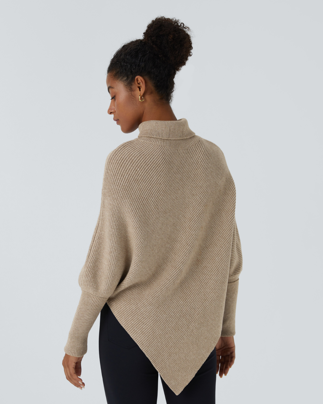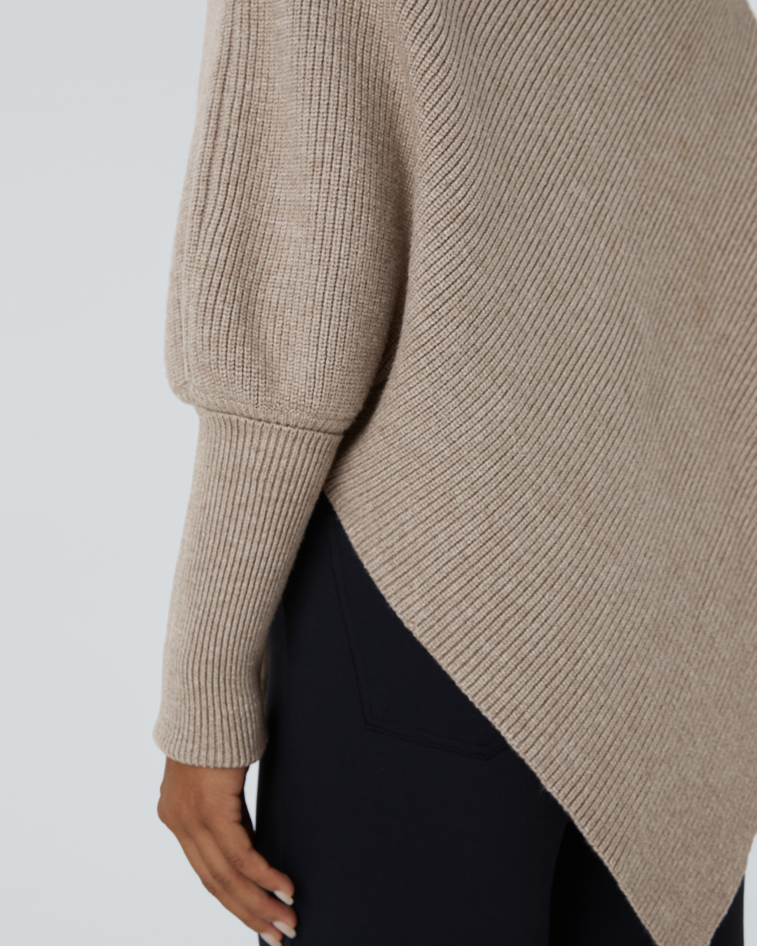 Camisola de Manga Comprida com Gola Alta e Bainha Inferior Assimétrica
