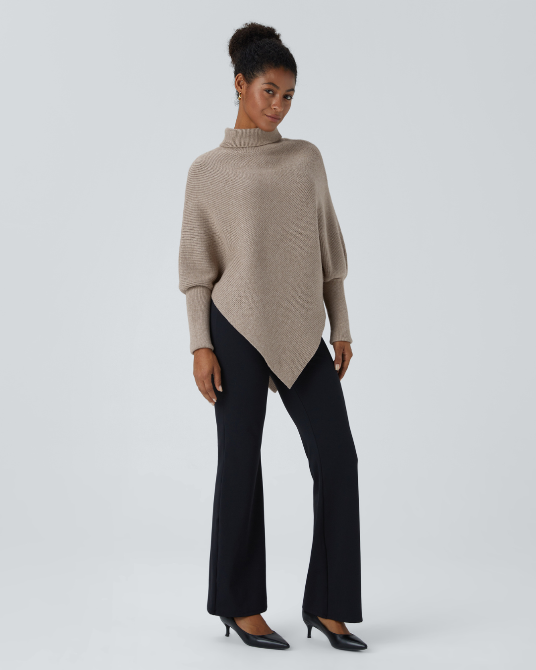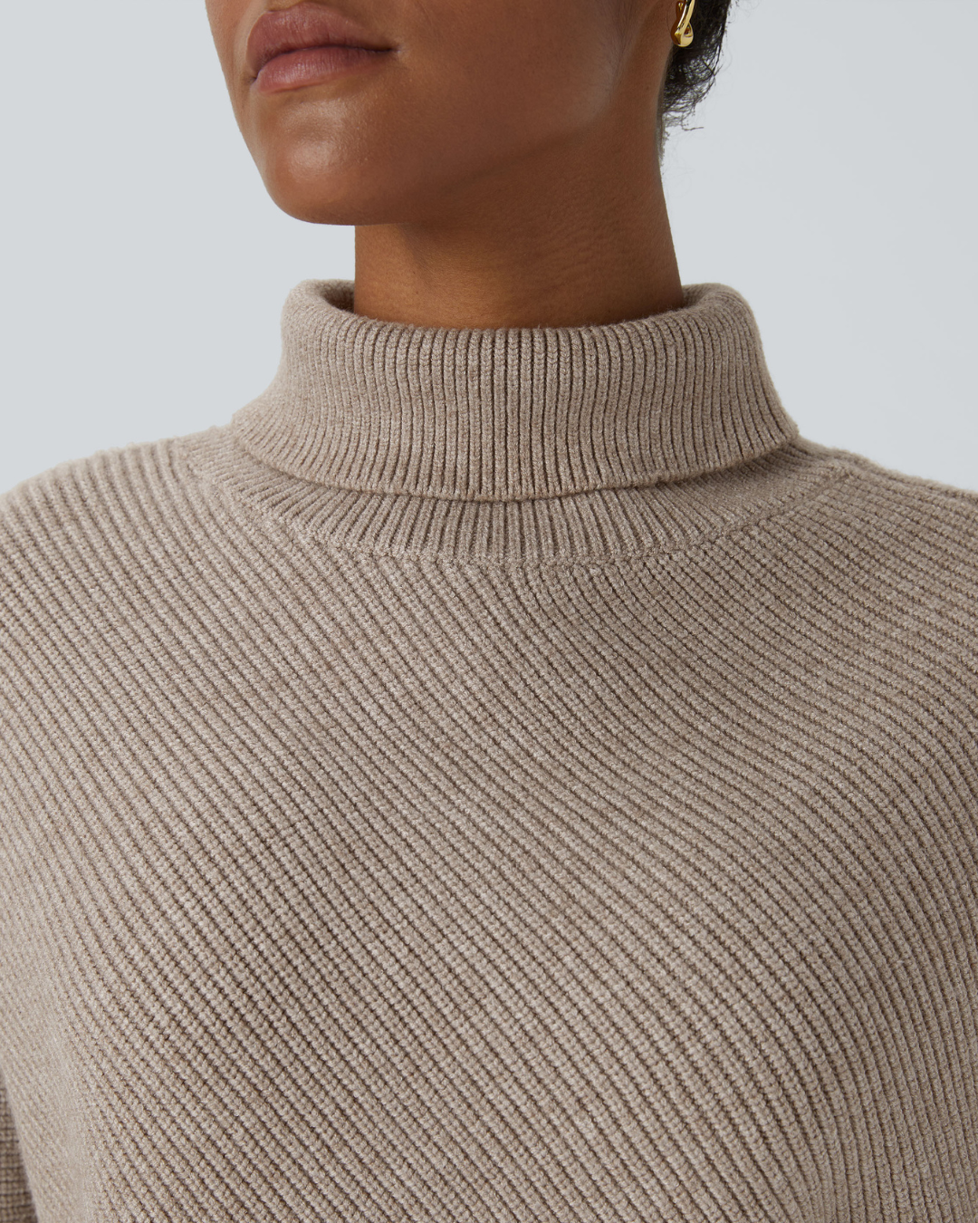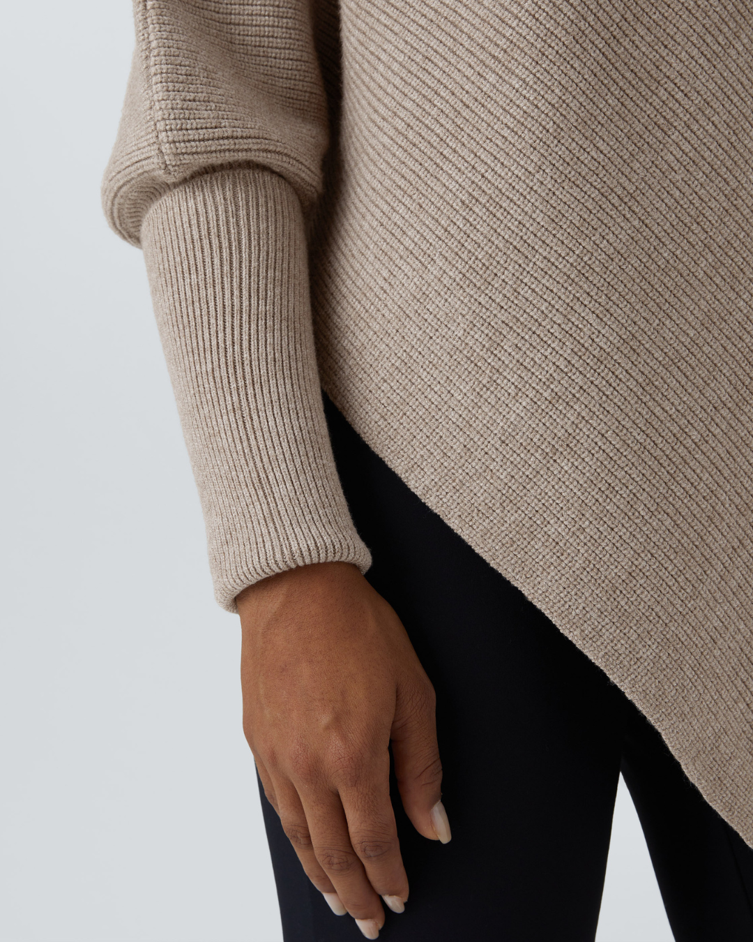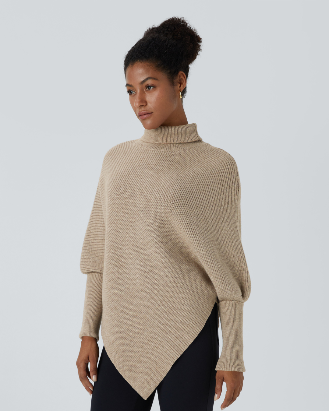 Camisola de Manga Comprida com Gola Alta e Bainha Inferior Assimétrica