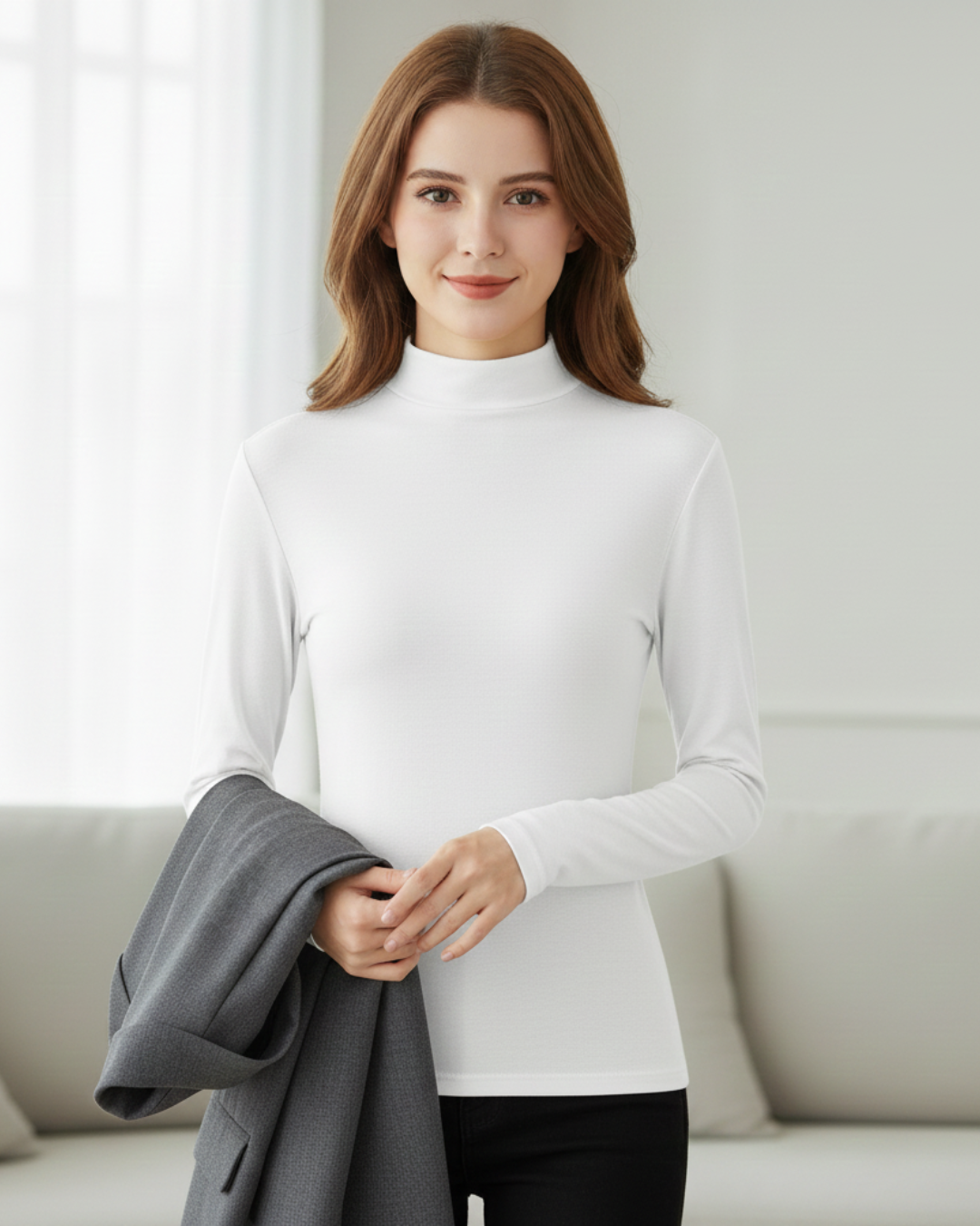 Corte justo com mangas compridas que estiliza e adapta-se naturalmente ao corpo. Material leve e agradável que oferece conforto durante todo o dia. Ideal para combinar com peças casuais ou mais elegantes.
