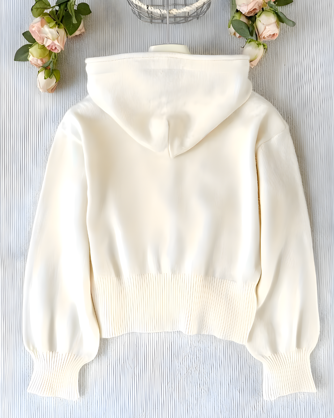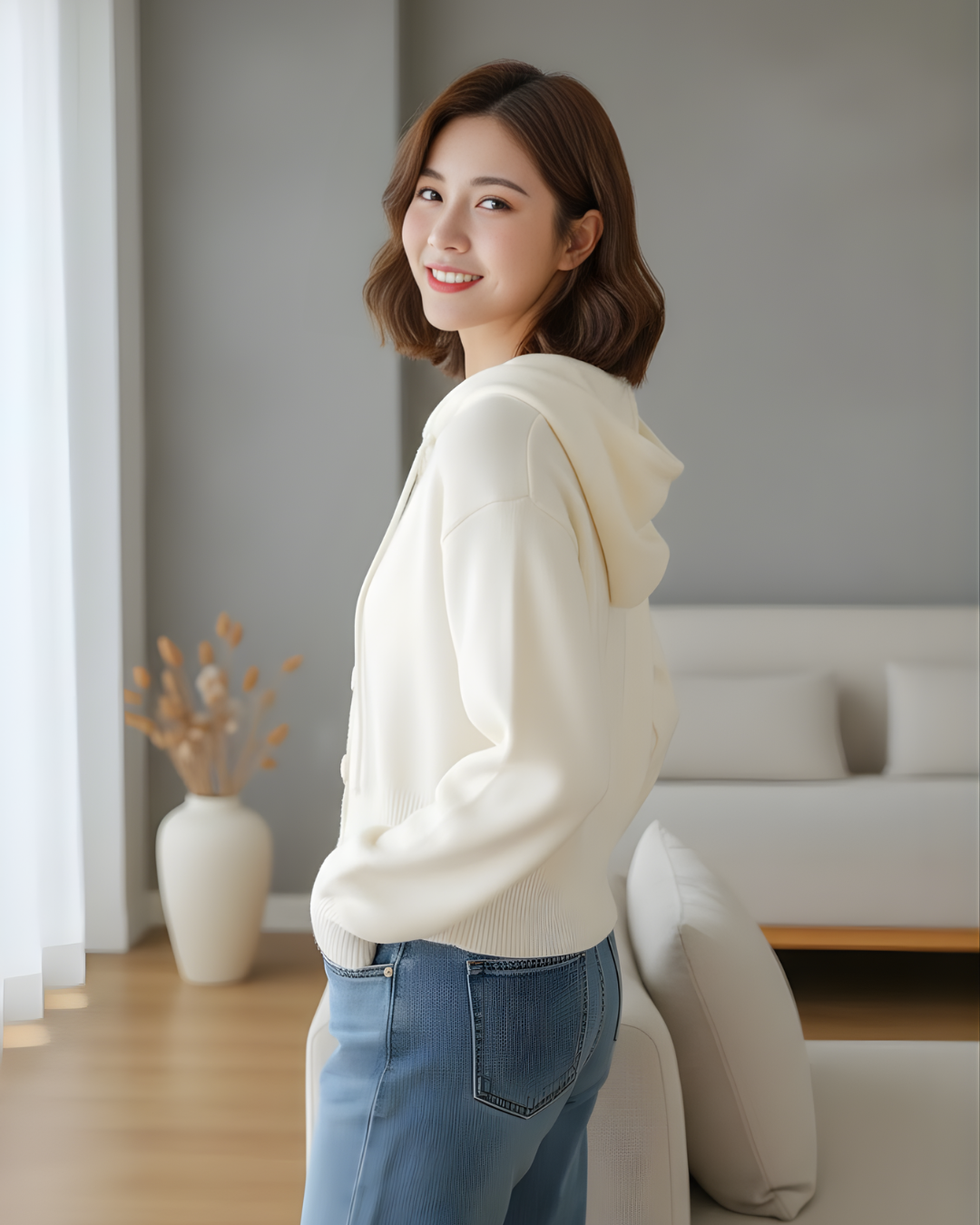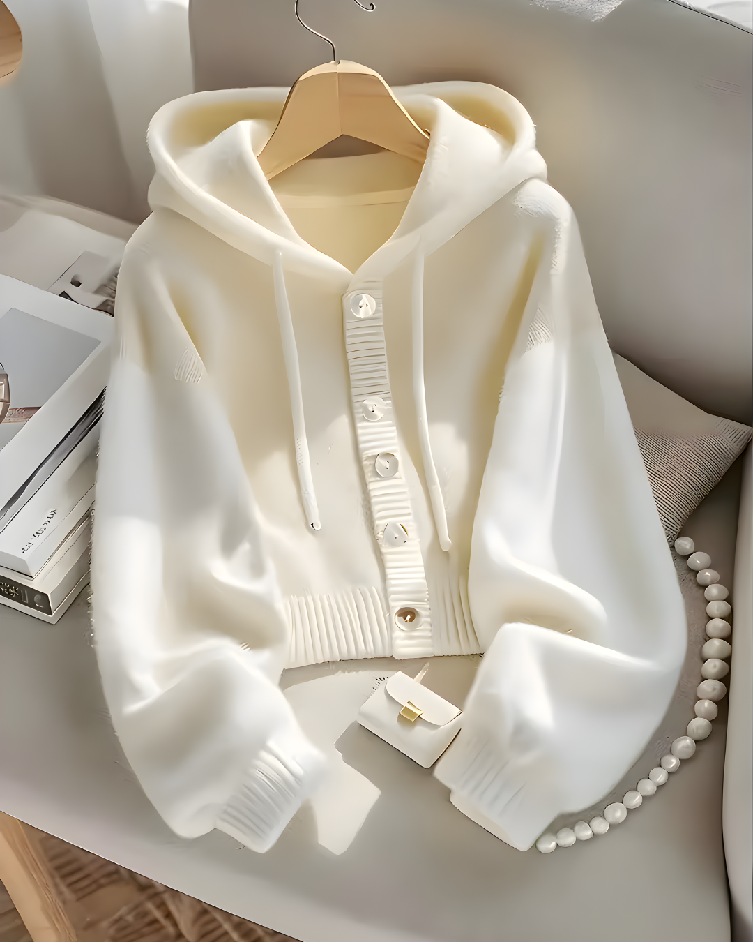 Cardigã Casual Curto com Capuz e Botões Para Mulher