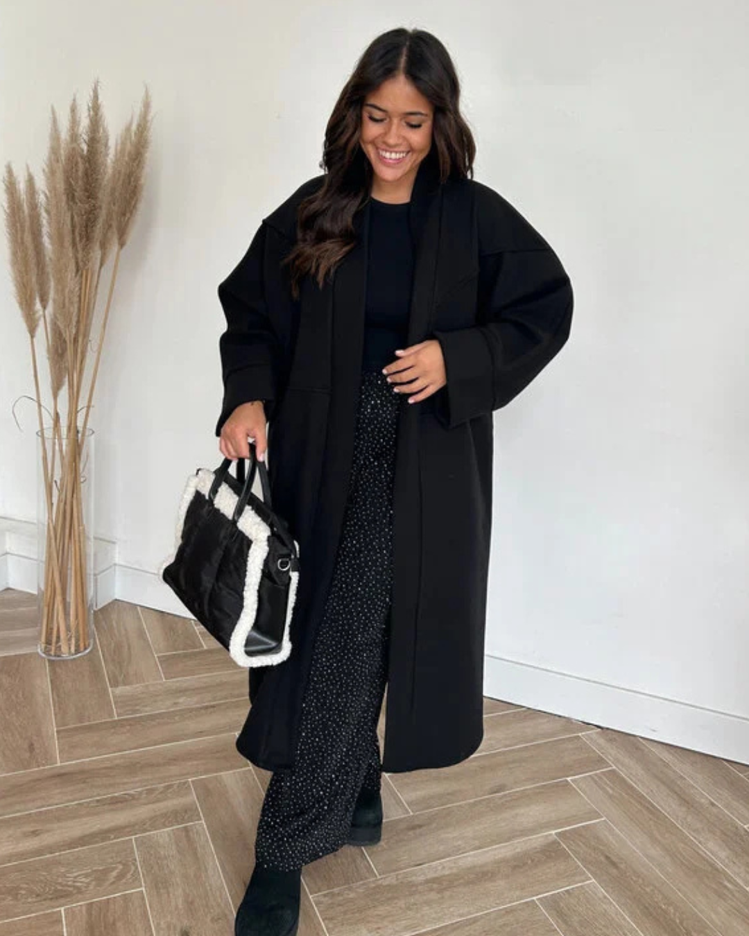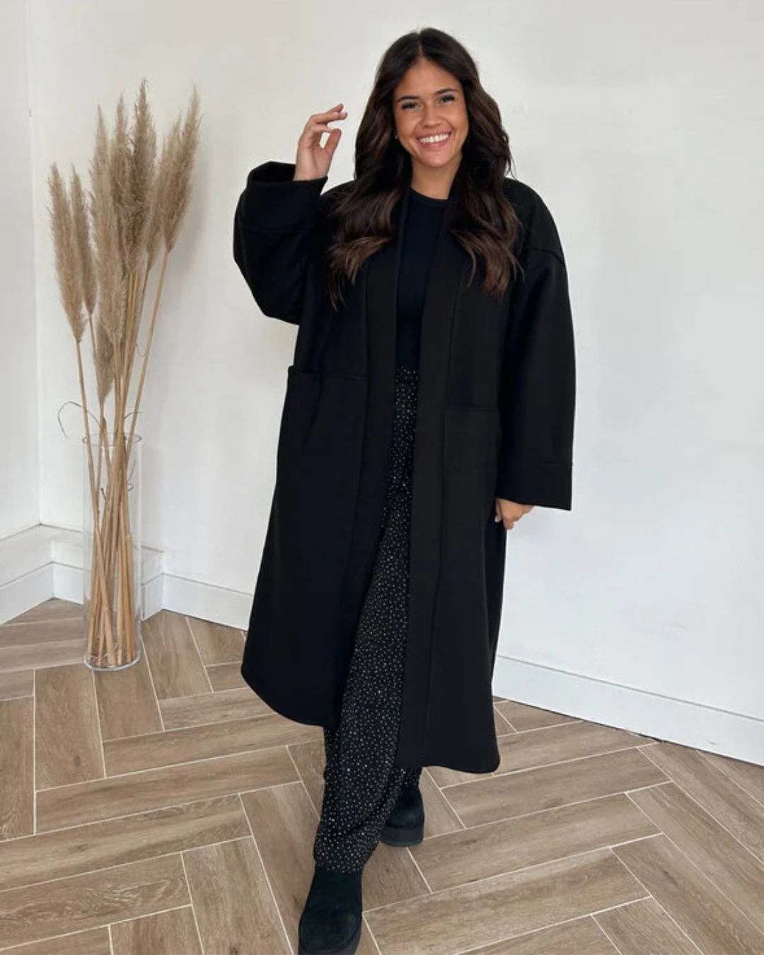 Casaco Comprido com Bolsos à Frente e Estilo Elegante