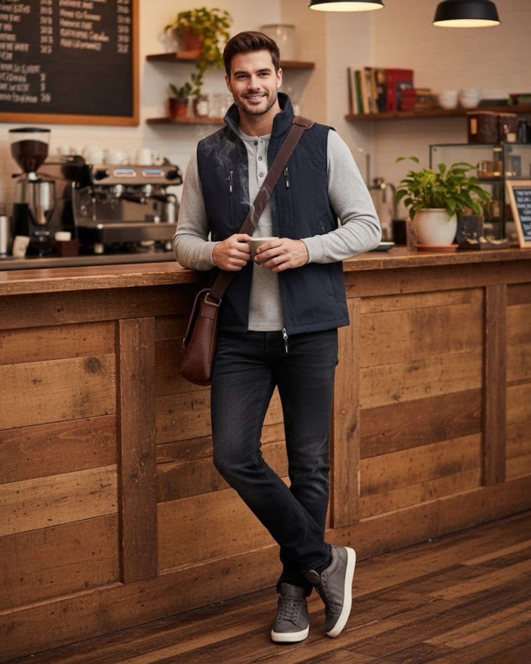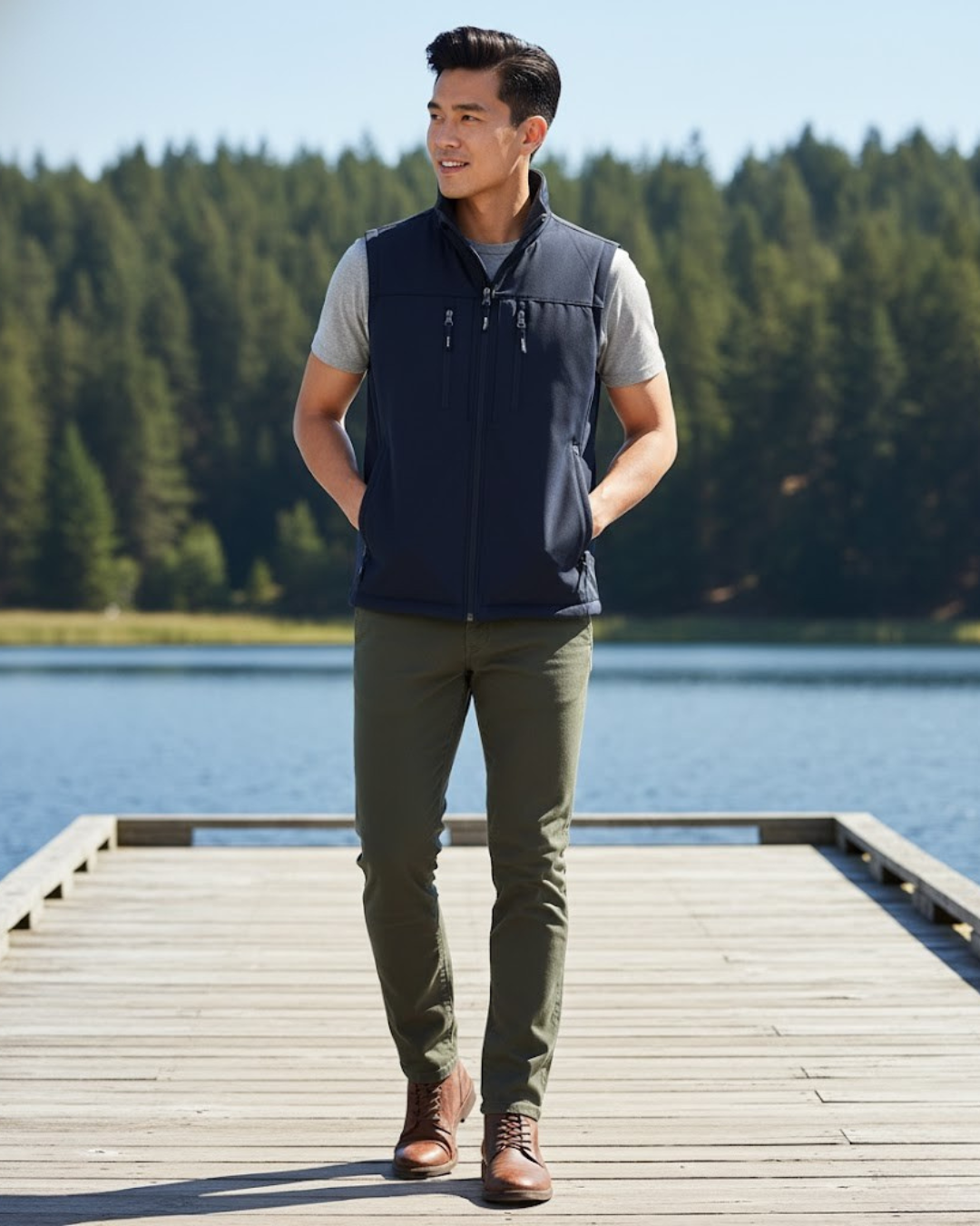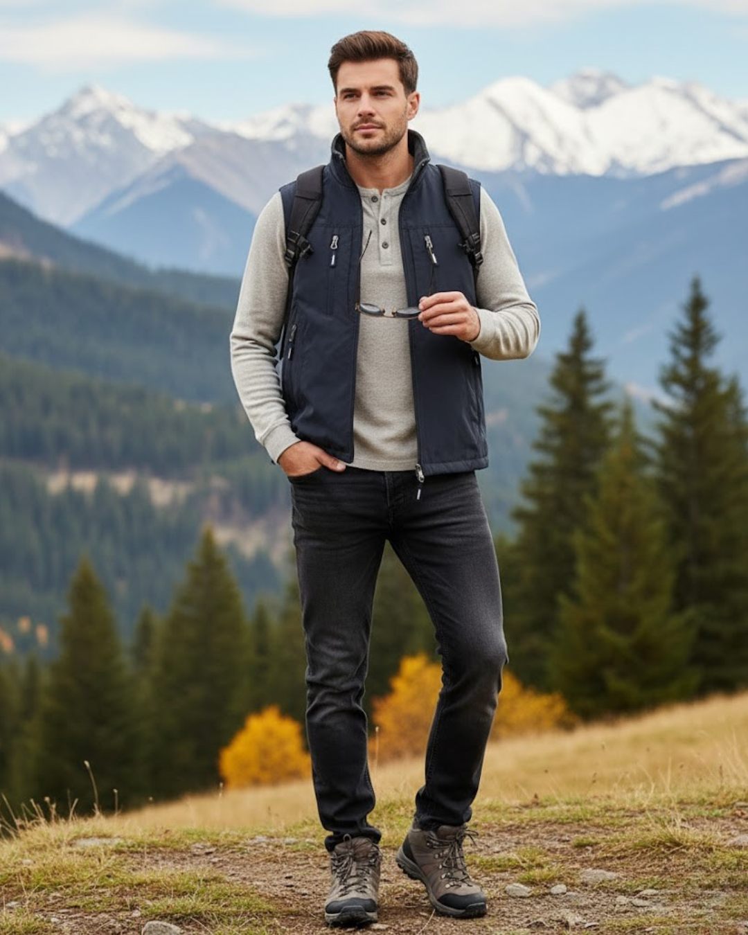 Este colete apresenta um design extragrande (oversize) e sem mangas, ideal para usar confortavelmente sobre outras peças de roupa. Oferece máxima liberdade de movimentos, sendo perfeito para um estilo casual ou para atividades ao ar livre que exigem mobilidade.