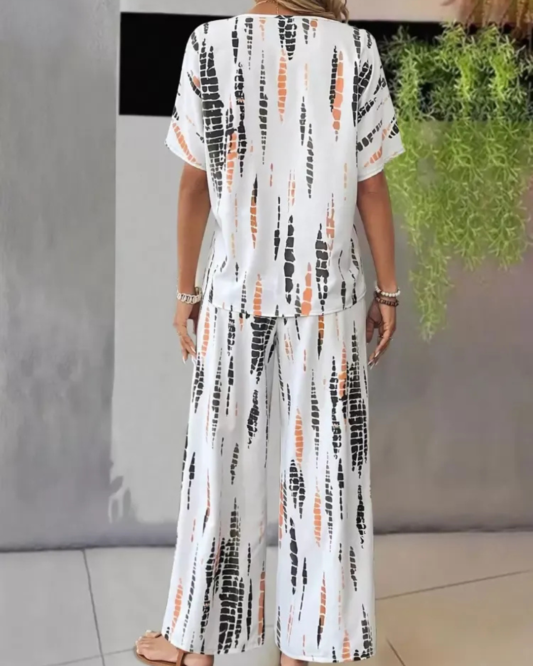Conjunto boémio de duas peças com gola redonda e estilo descontraído