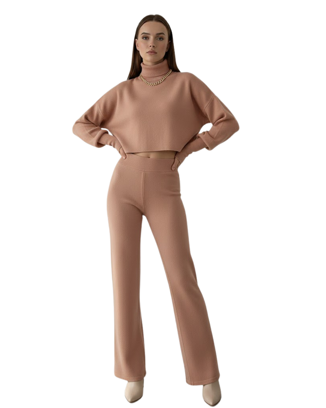 Conjunto de Duas Peças com Top de Gola Alta para Mulher
