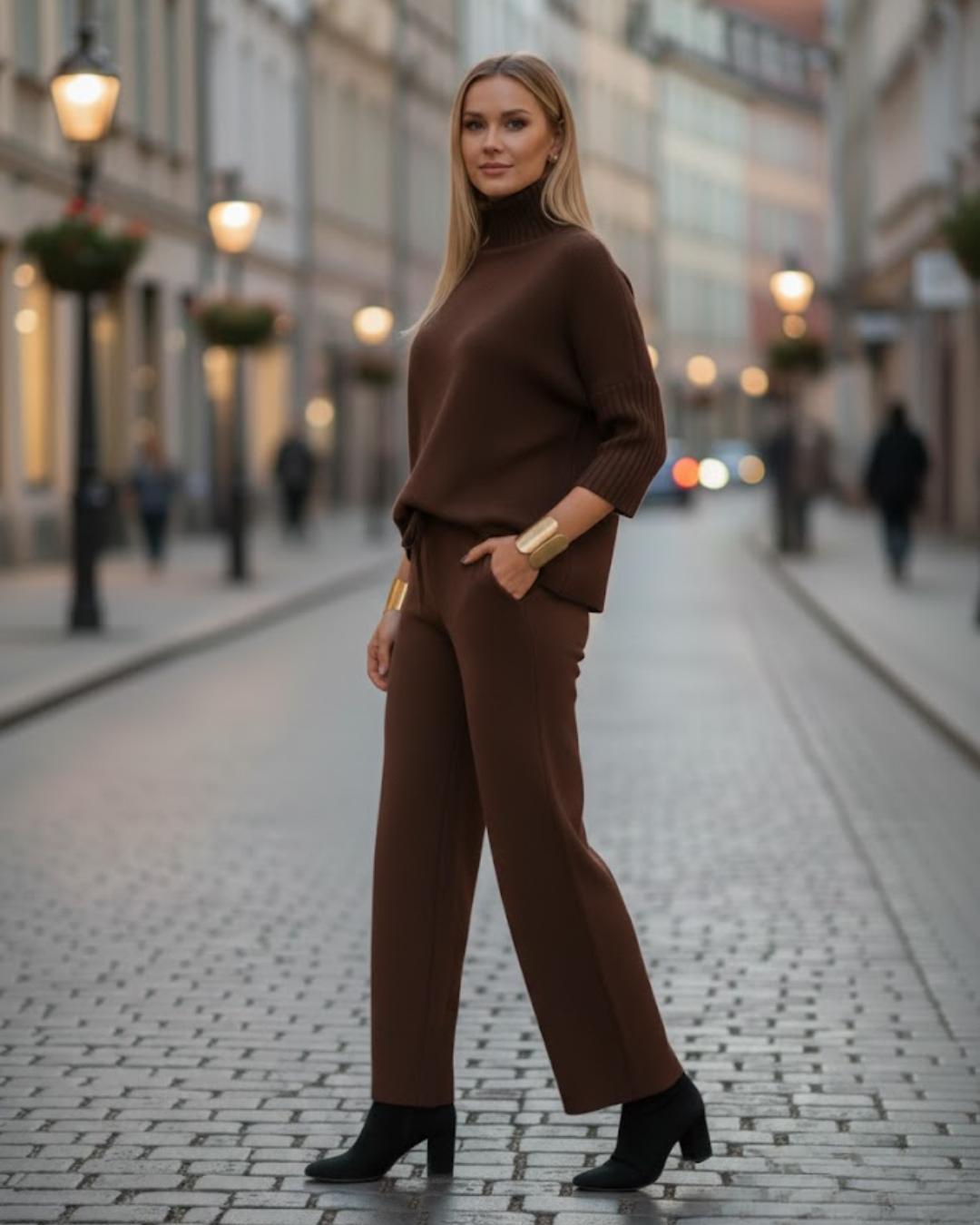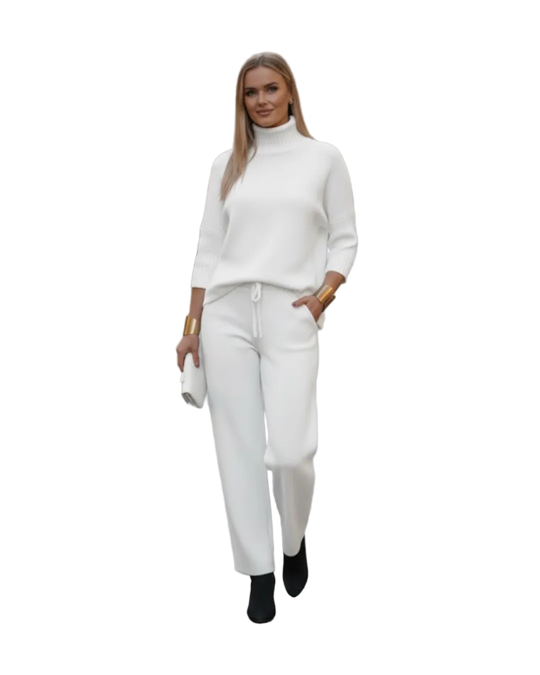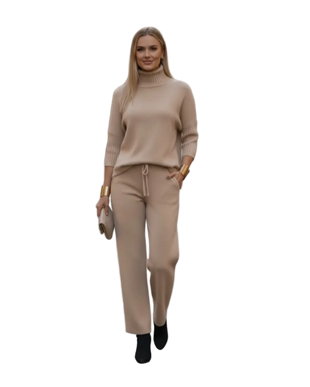 Este set destaca-se pela sua estética simples e intemporal, tornando-o um básico essencial que eleva qualquer guarda-roupa. A sua natureza minimalista facilita a combinação com outras peças e acessórios, adaptando-se sem esforço a múltiplos ambientes, desde o escritório a passeios casual.