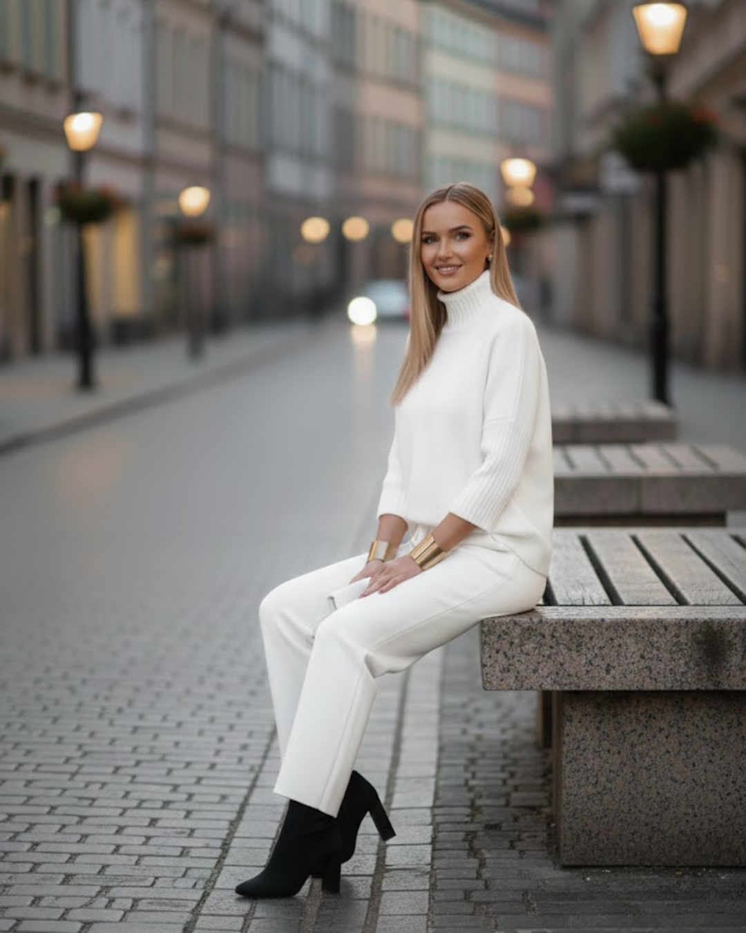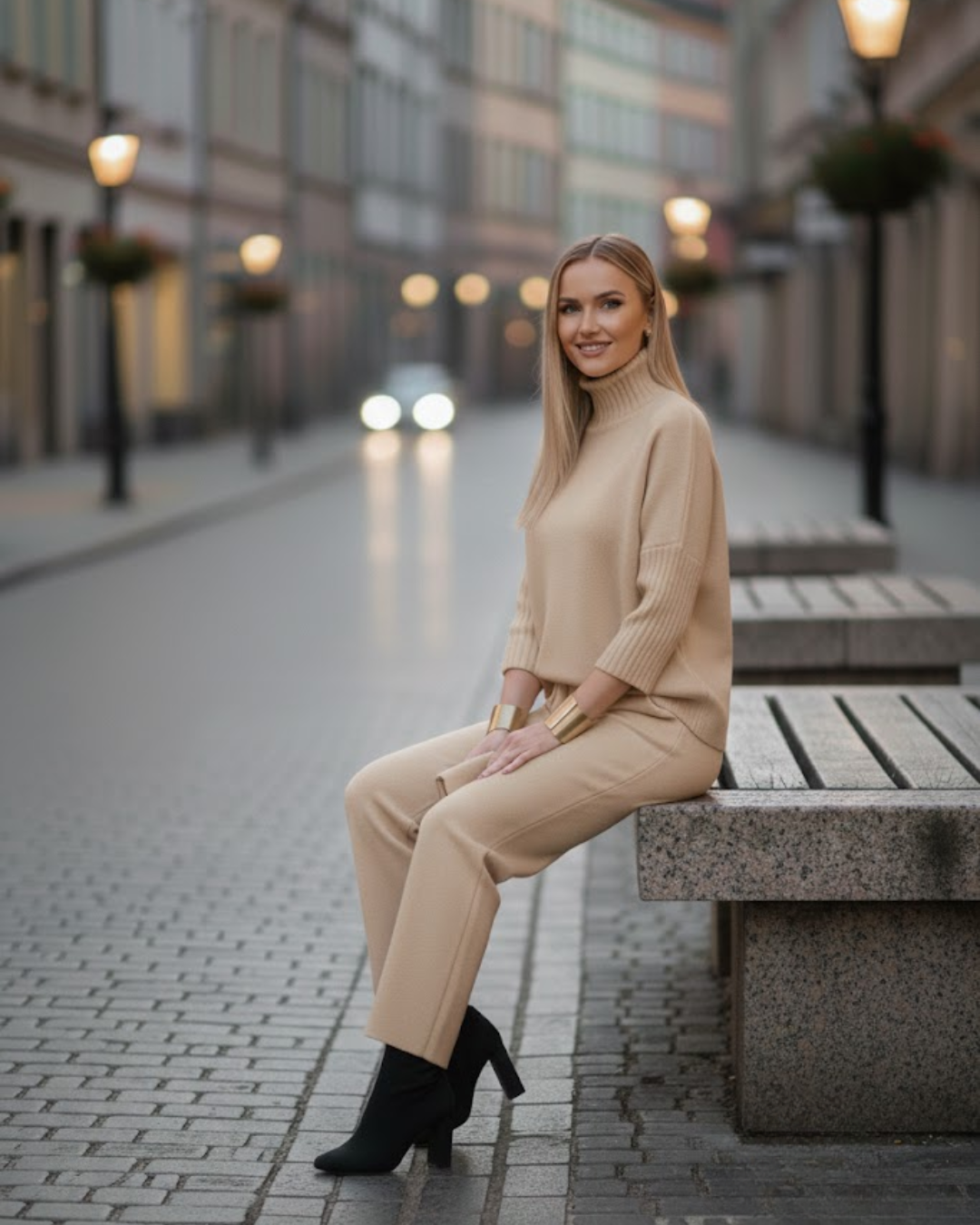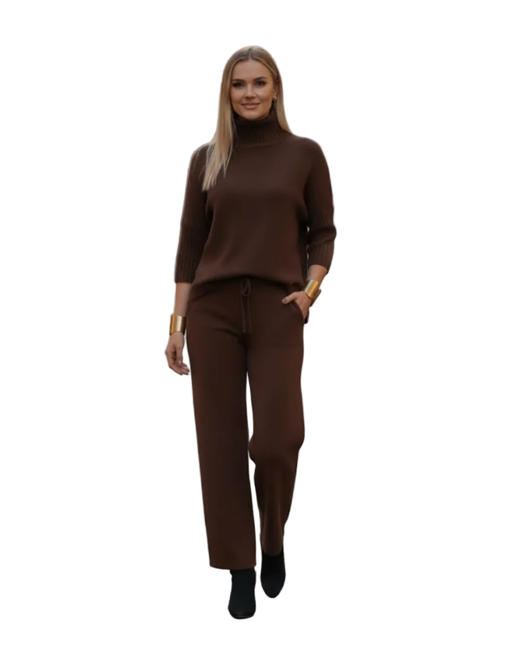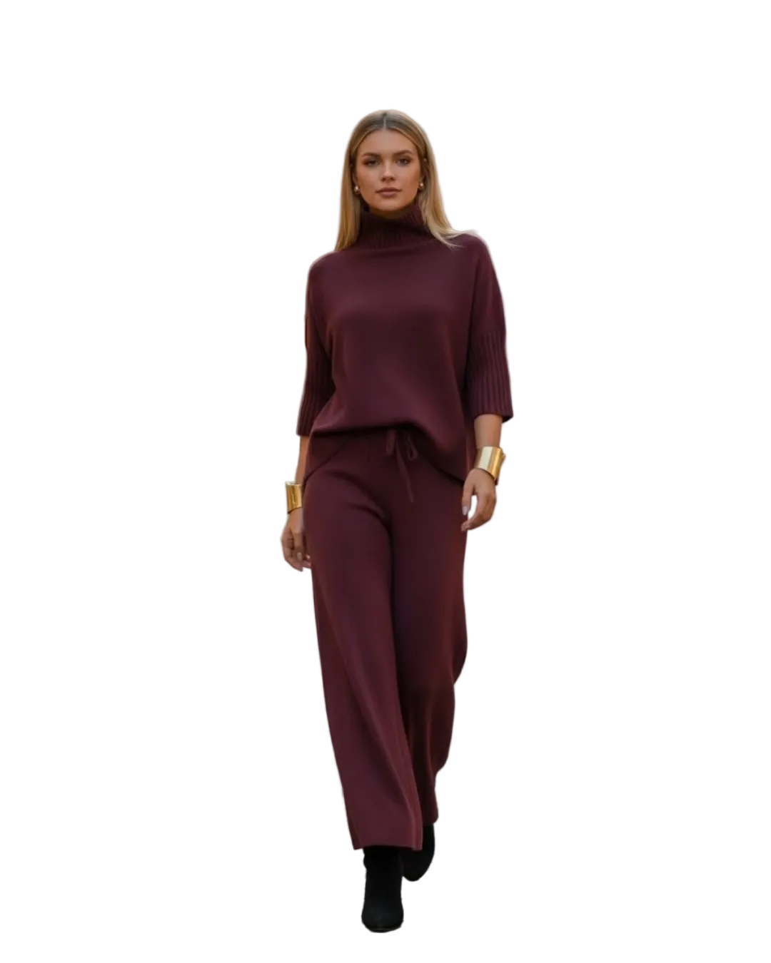 Este set destaca-se pela sua estética simples e intemporal, tornando-o um básico essencial que eleva qualquer guarda-roupa. A sua natureza minimalista facilita a combinação com outras peças e acessórios, adaptando-se sem esforço a múltiplos ambientes, desde o escritório a passeios casual.