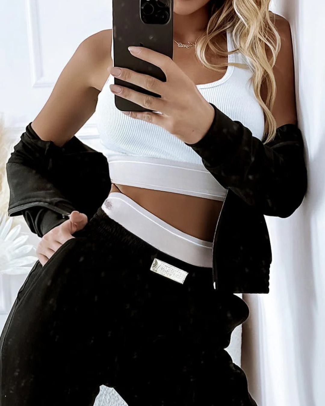 Conjuntos de Desporto de 3 Peças com Fecho de Correr para Mulher