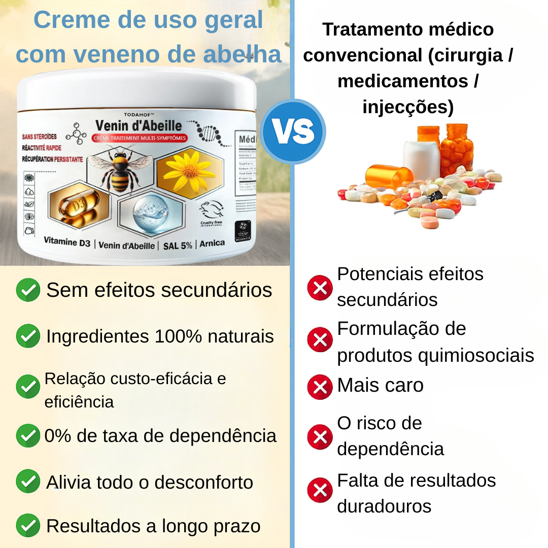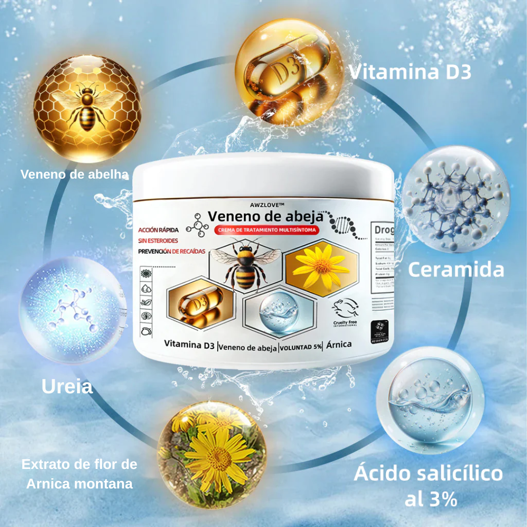 La crema combina el poder natural del veneno de abeja para calmar, regenerar e hidratar la piel, aliviando rápidamente irritaciones, rojeces y afecciones como eccema, rosácea o psoriasis. Su fórmula suave, antioxidante y antiinflamatoria es ideal para pieles sensibles y uso diario.