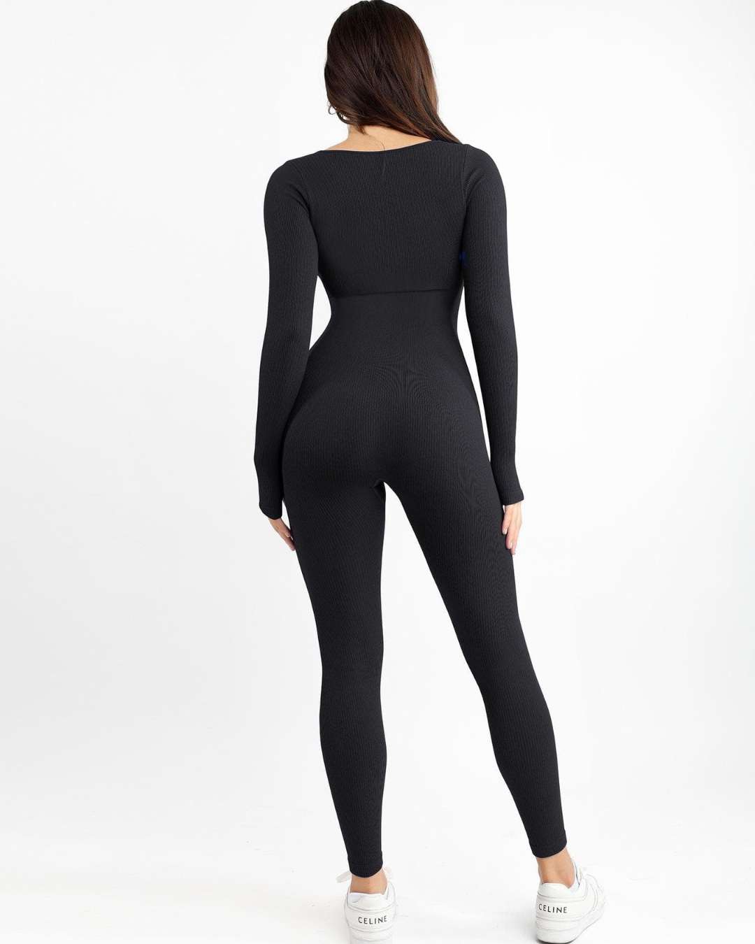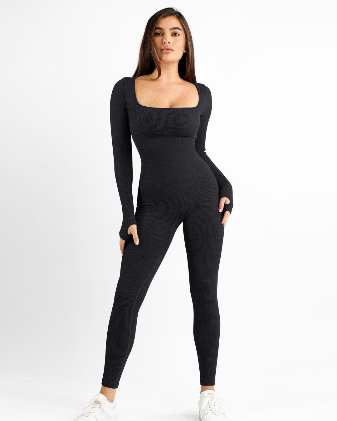 Macacão de Treino com Decote Quadrado sem Costuras e Modelador