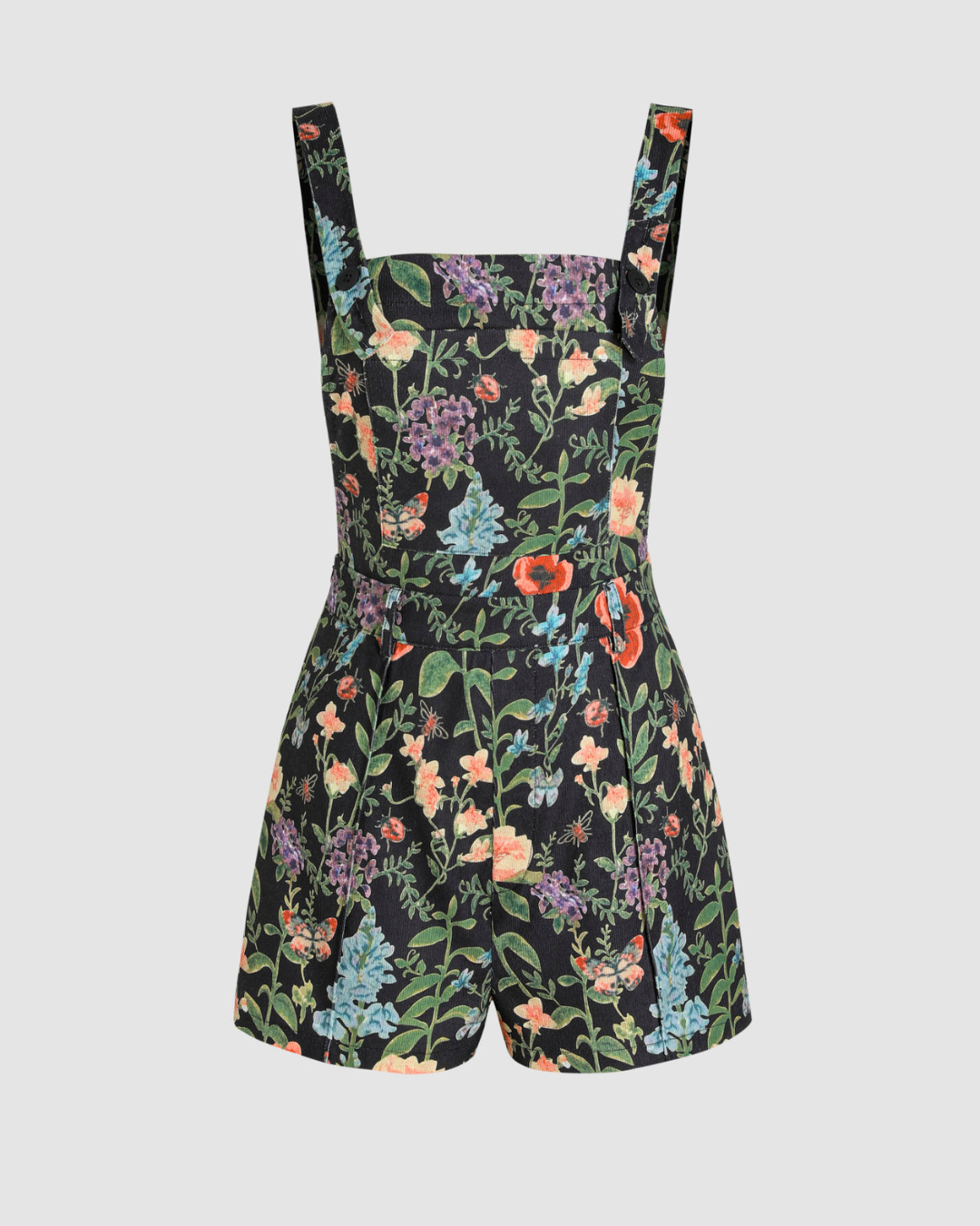 Macacão de Veludo Cotelê com Estampa Floral e Botões Frontais