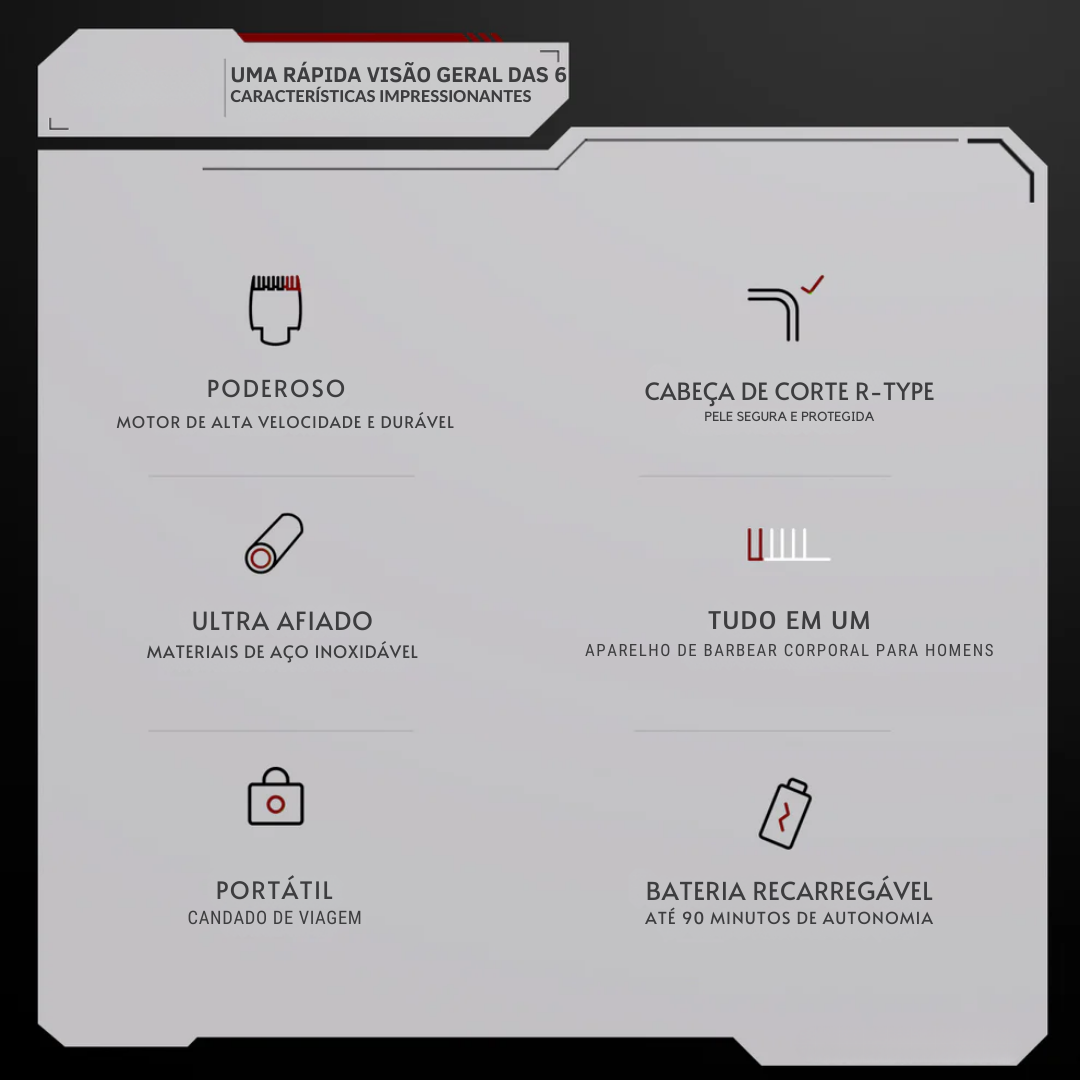 • Zonas Seguras: As lâminas arredondadas protegem a pele, tornando-o apto para outras zonas como braços, pernas e zonas sensíveis.