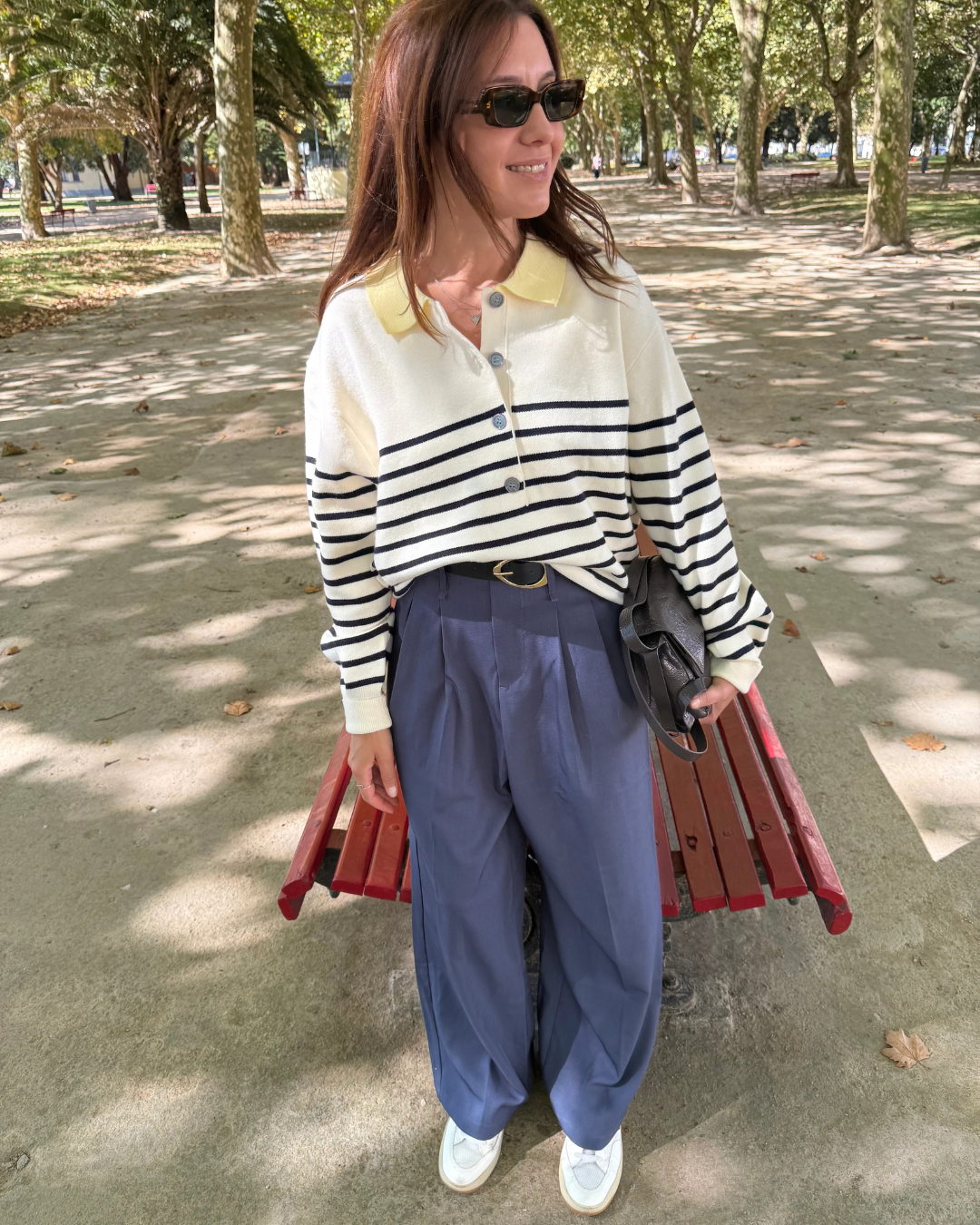 seu design de perna larga e comprimento total cria um efeito de alto voo que alonga a figura e oferece um caminhar com máxima elegância.