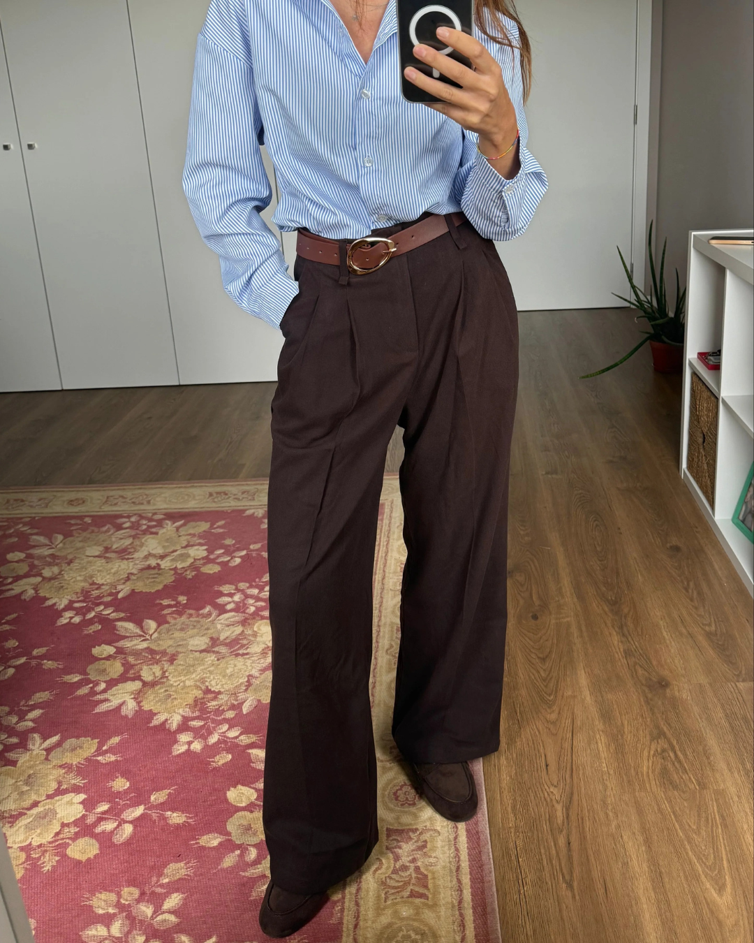 Calças de alfaiataria com perna larga e cintura alta para mulher
