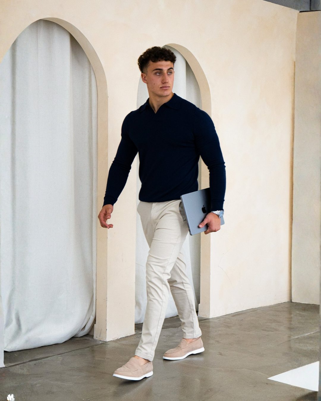 Este polo de manga comprida foi concebido para quem procura uma elegância discreta e um estilo intemporal. A sua característica gola aberta confere-lhe um toque moderno e cuidado, perfeito para qualquer ocasião.