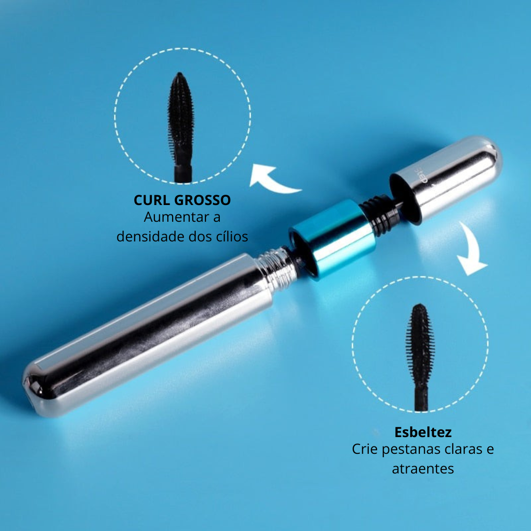 Transforme seus cílios com a tecnologia 2 em 1! Uma escova curva para ondulação intensa e outra precisa para alongamento máximo, garantindo um olhar impactante.
