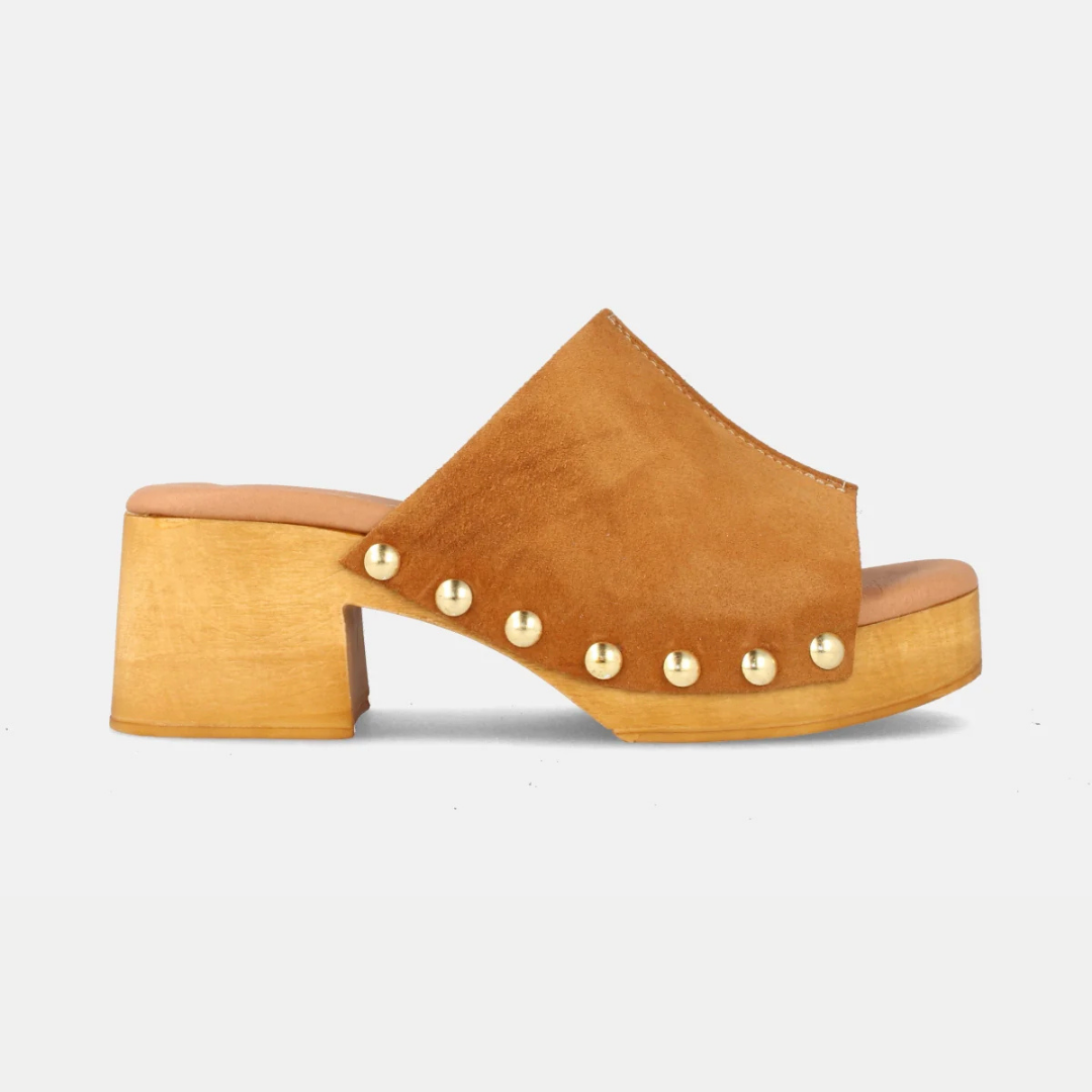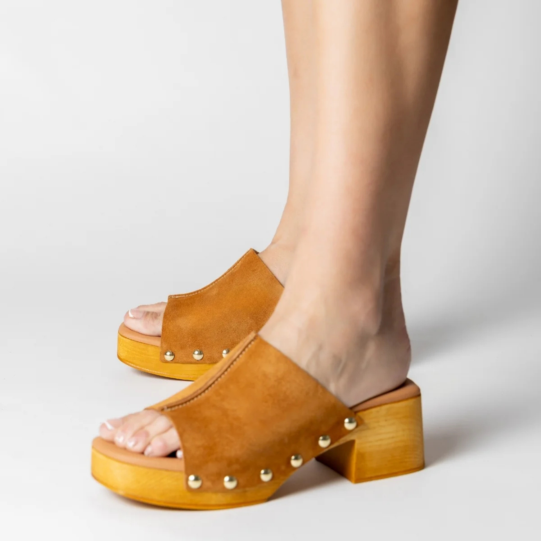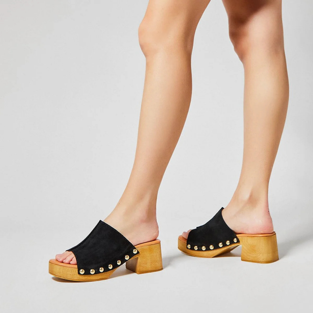 Sandálias de couro para mulher com plataforma e salto médio em couro