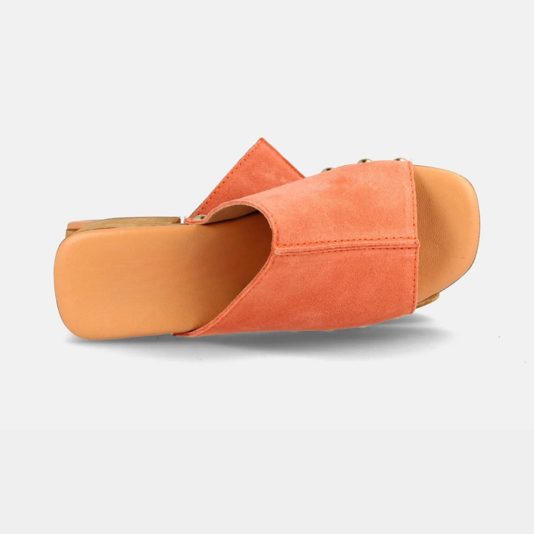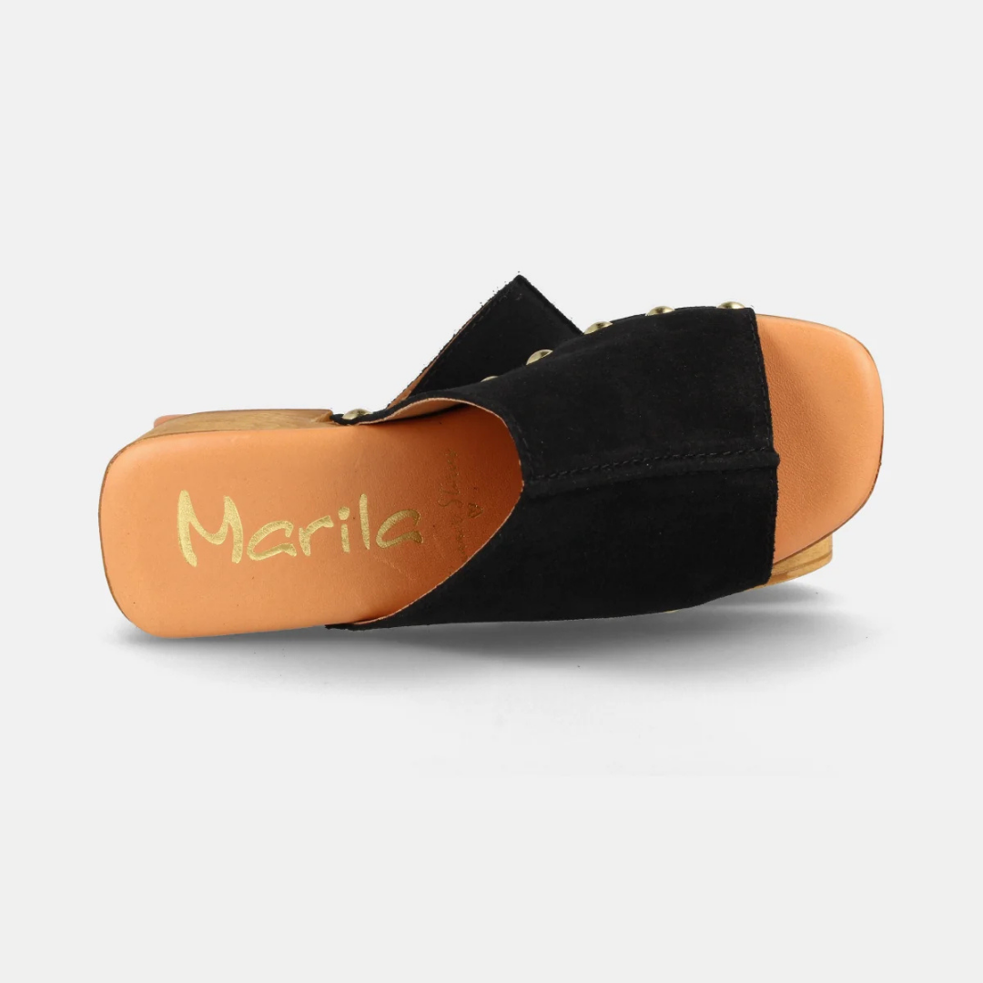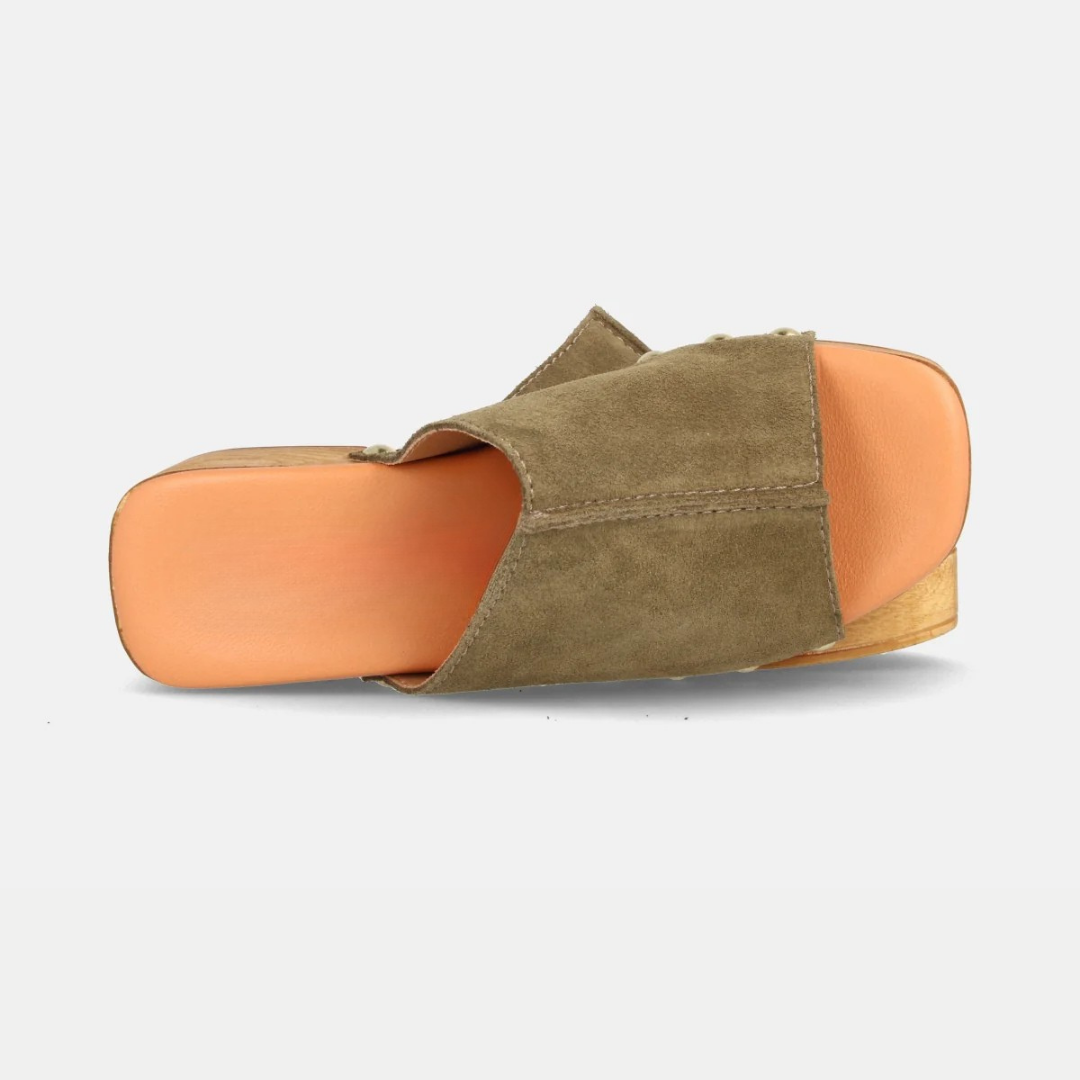 Sandálias de couro para mulher com plataforma e salto médio em couro