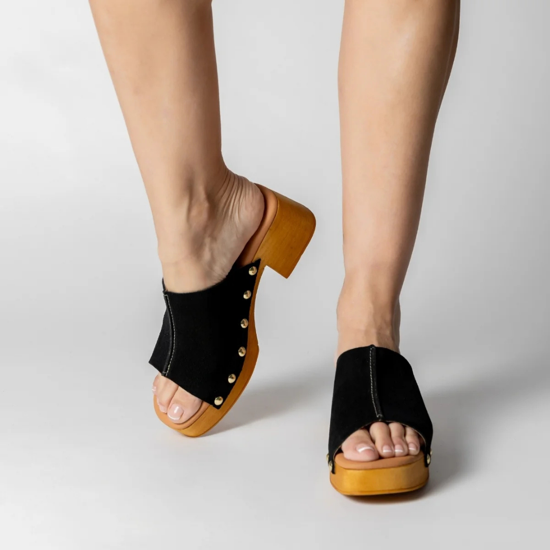 O salto médio proporciona altura ideal sem comprometer o conforto, garantindo equilíbrio e segurança ao caminhar.