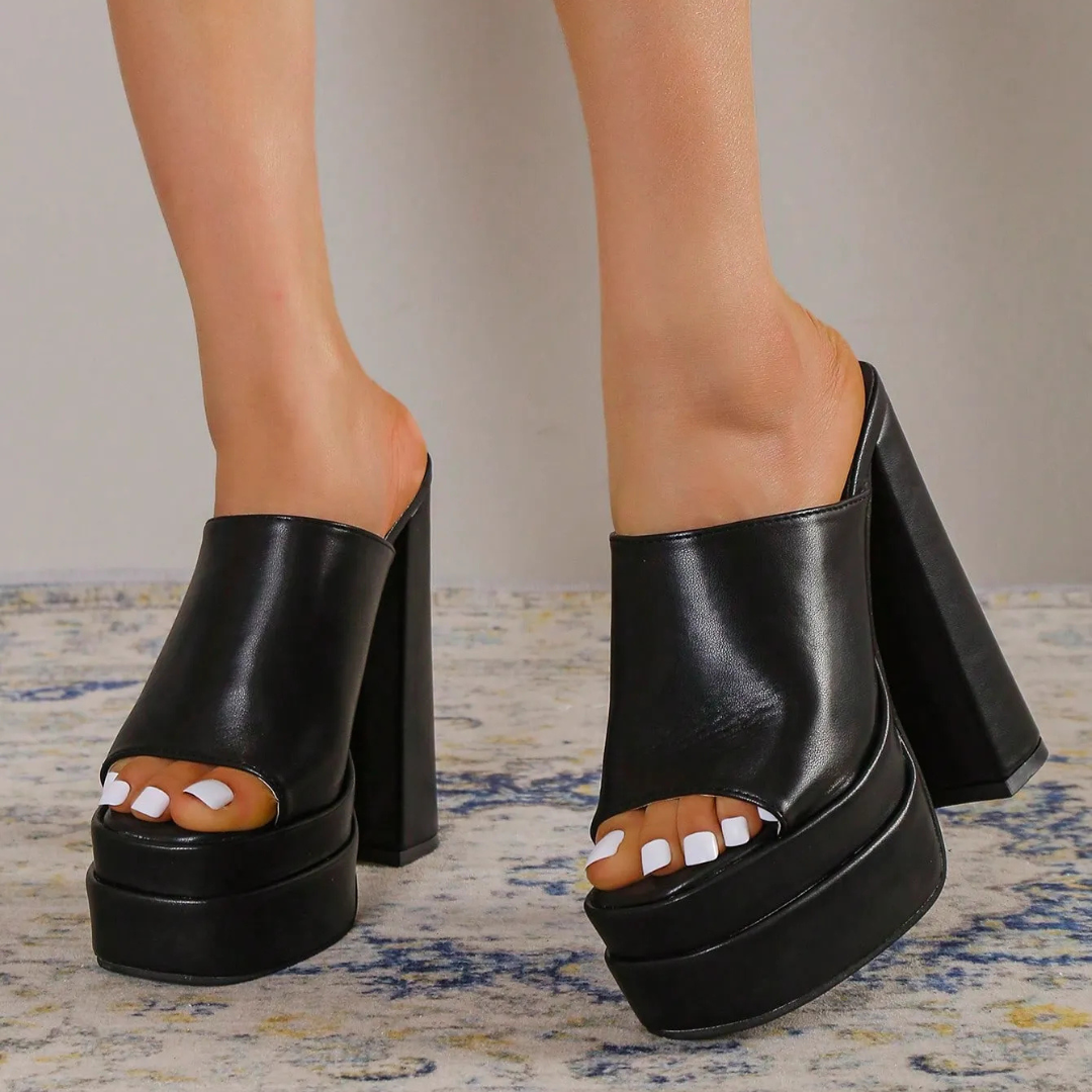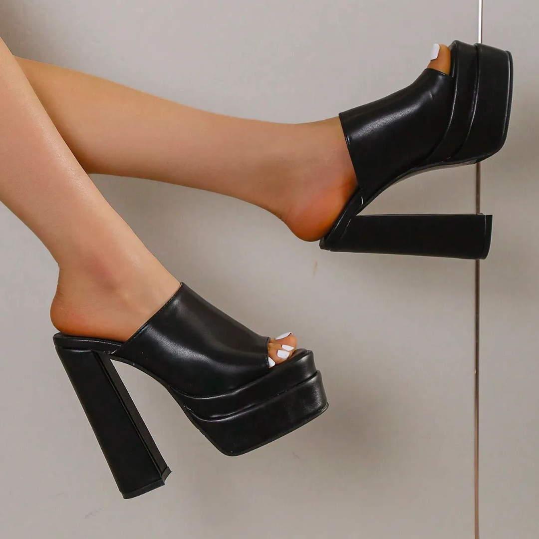 Salto alto, biqueira aberta e design minimalista