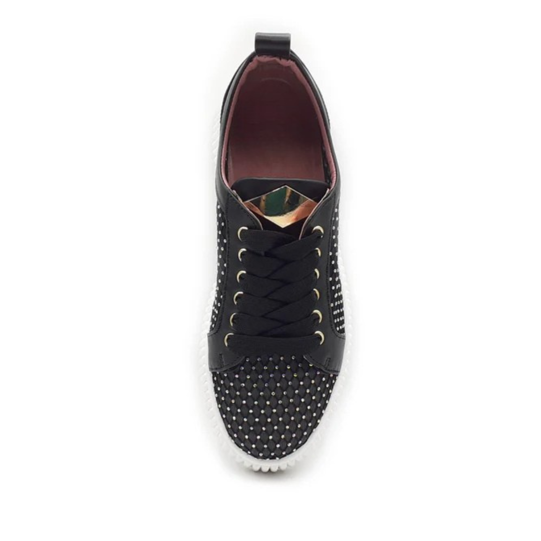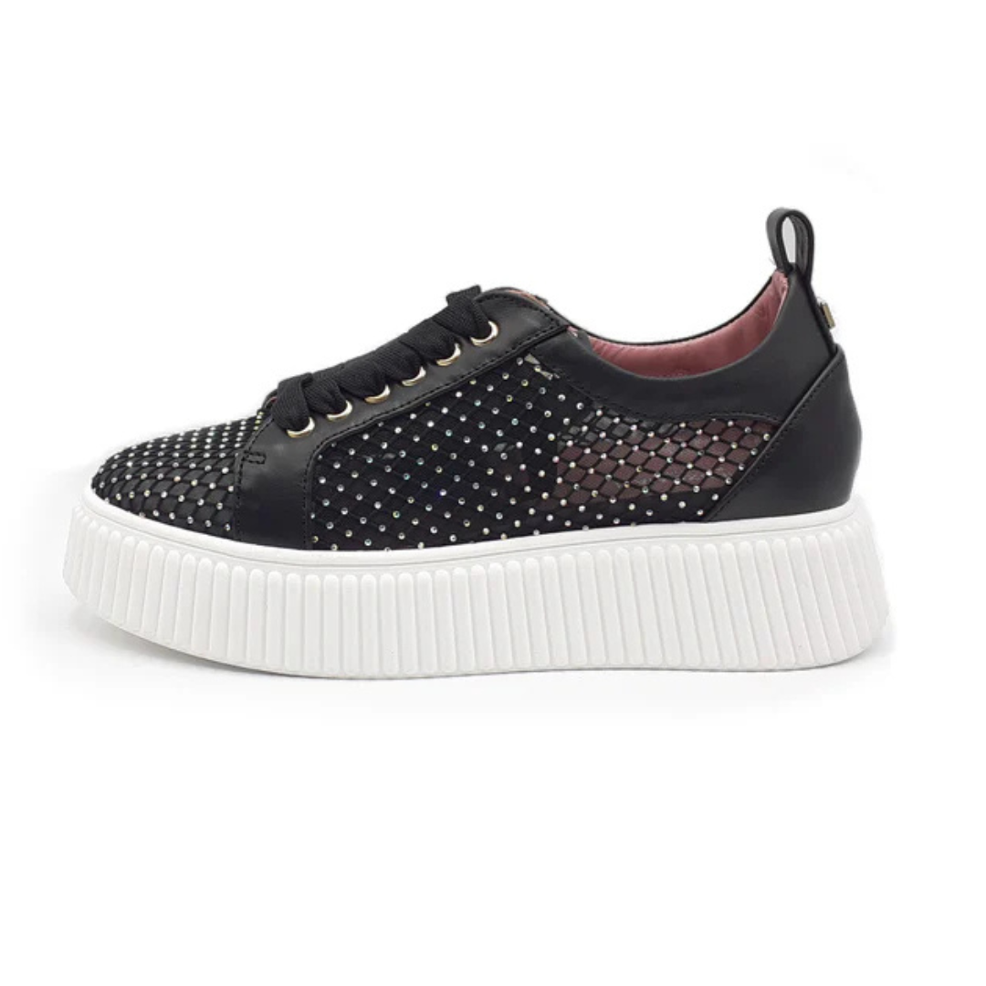 Sapatilhas de Cano Alto Pretas com Design Decorativo em Malha e um Brilho