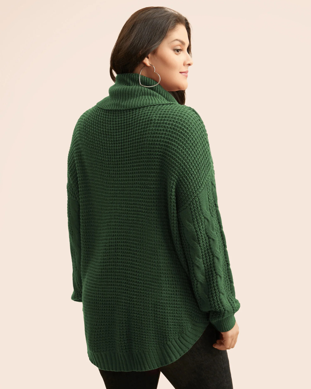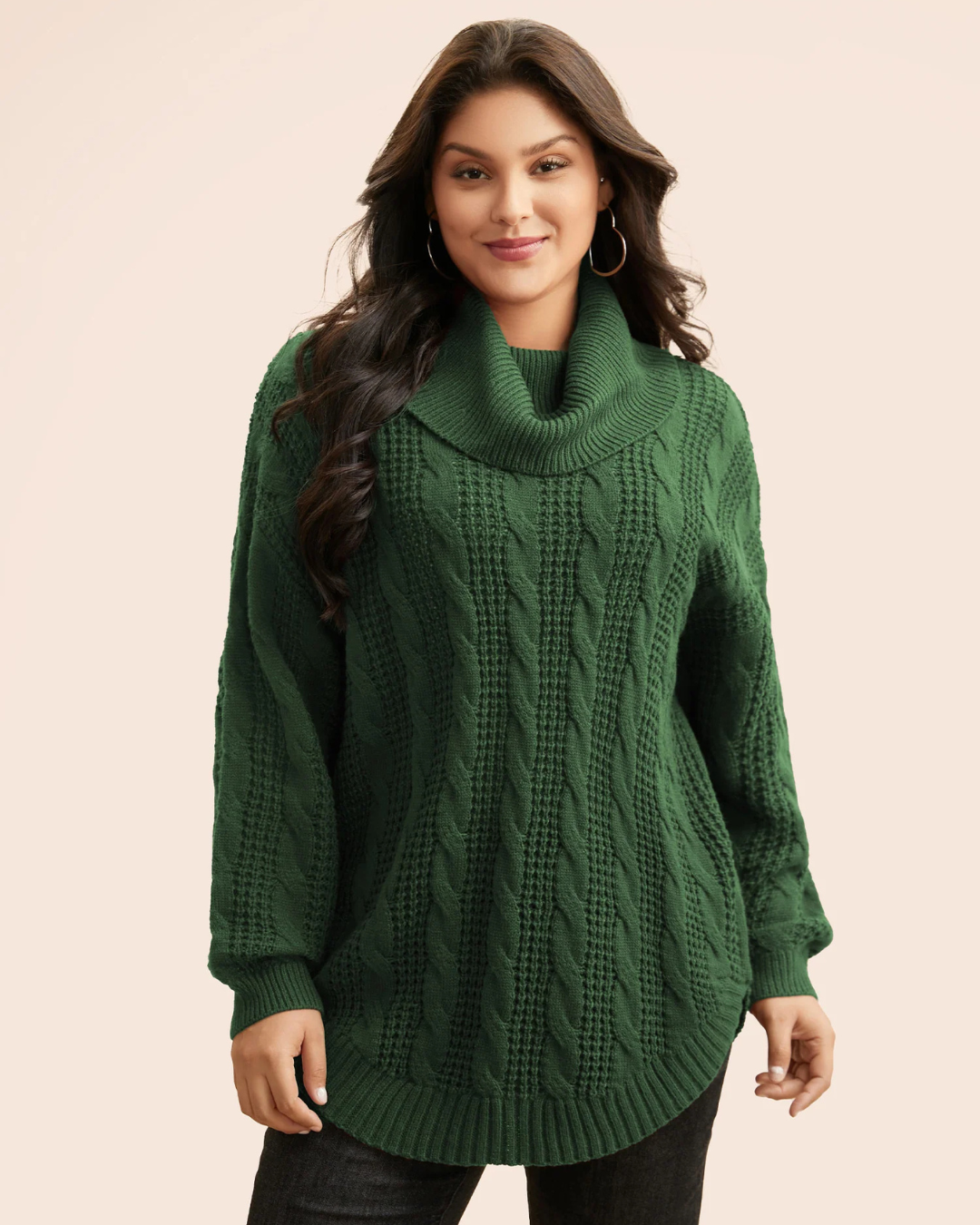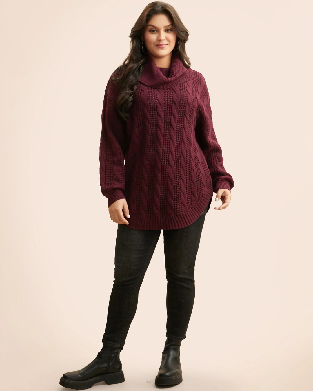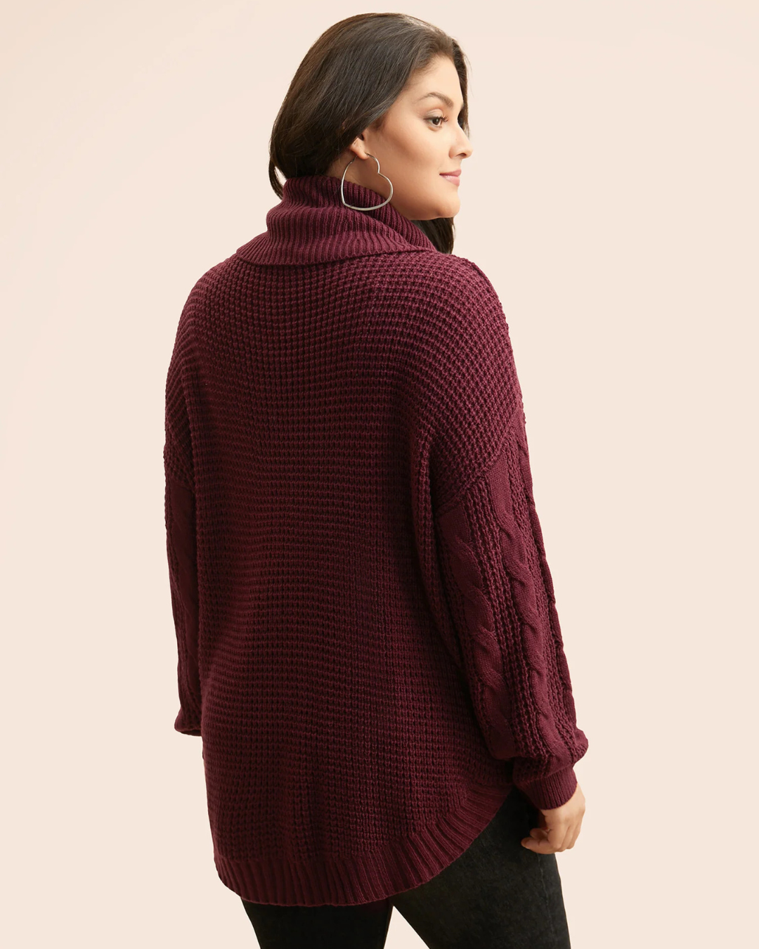 Suéter de Gola Alta com Bainha Curva e Tecido de Malha Entrançada