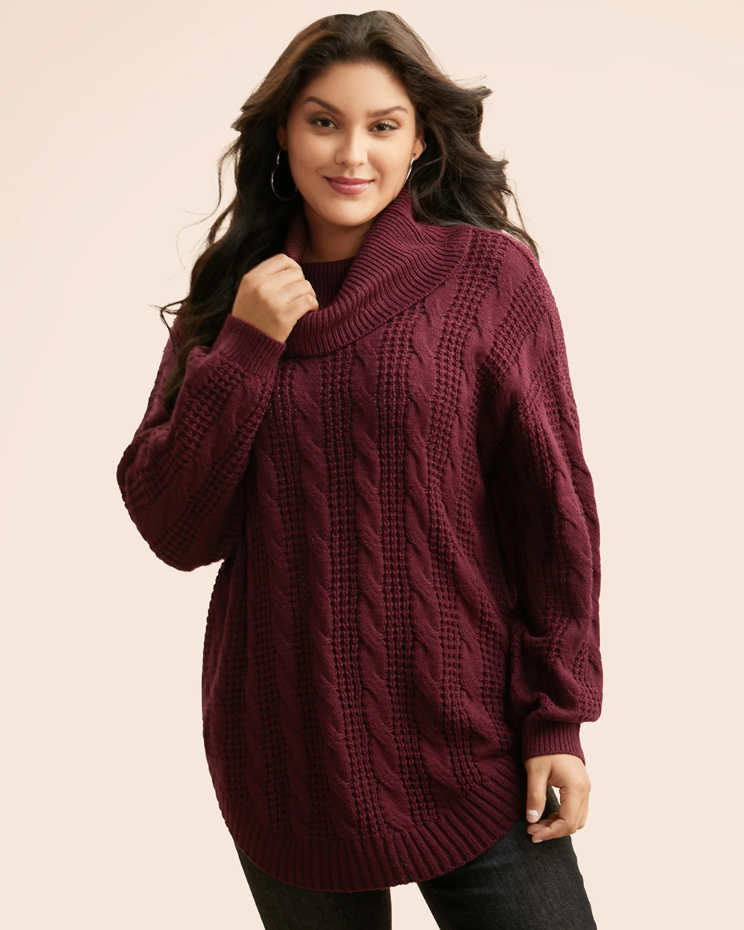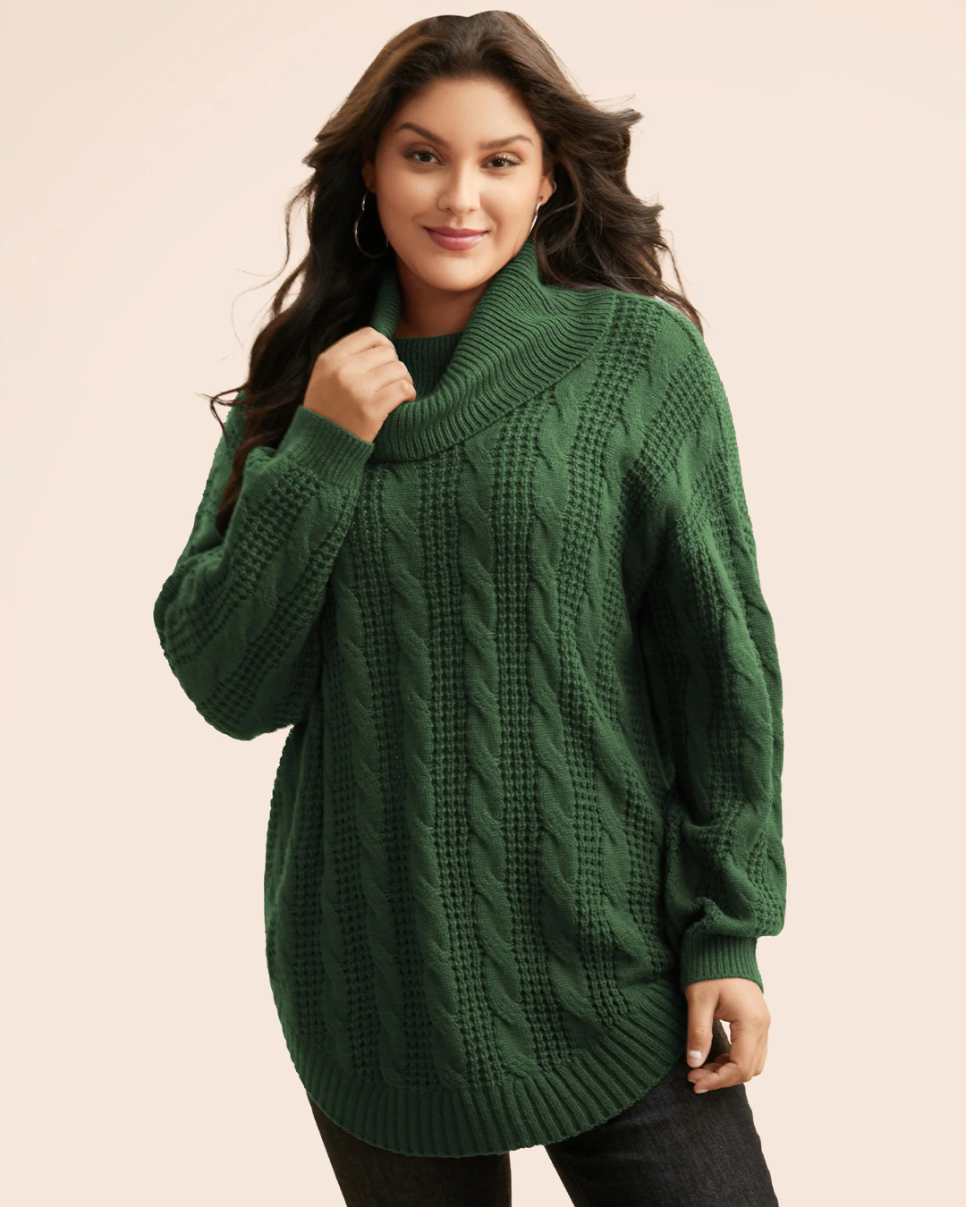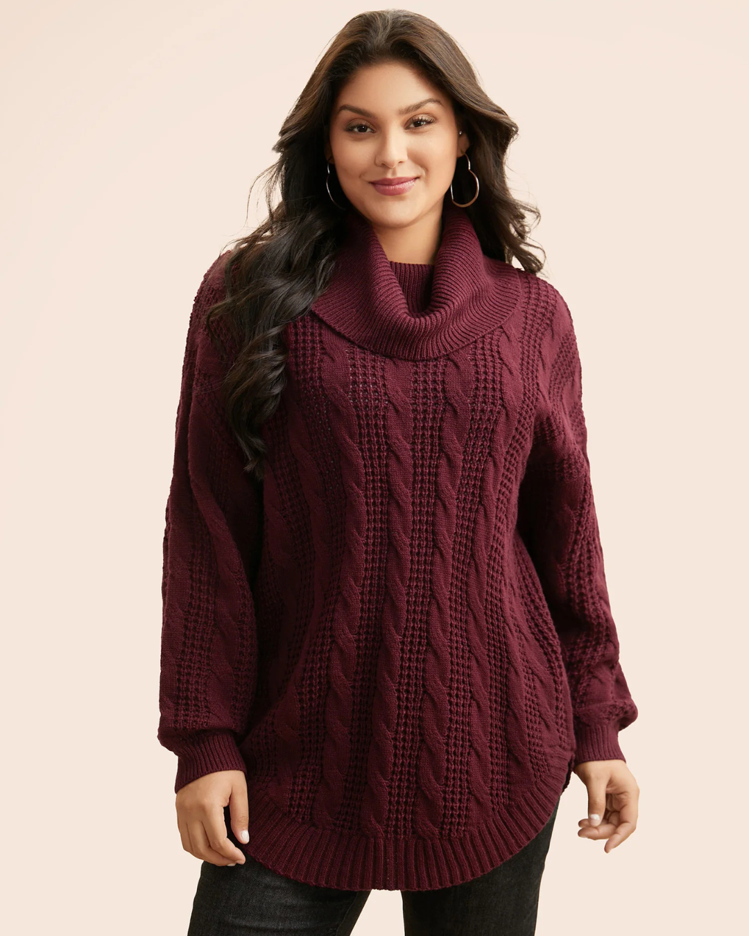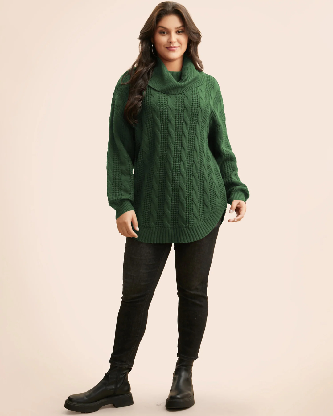 Suéter de Gola Alta com Bainha Curva e Tecido de Malha Entrançada