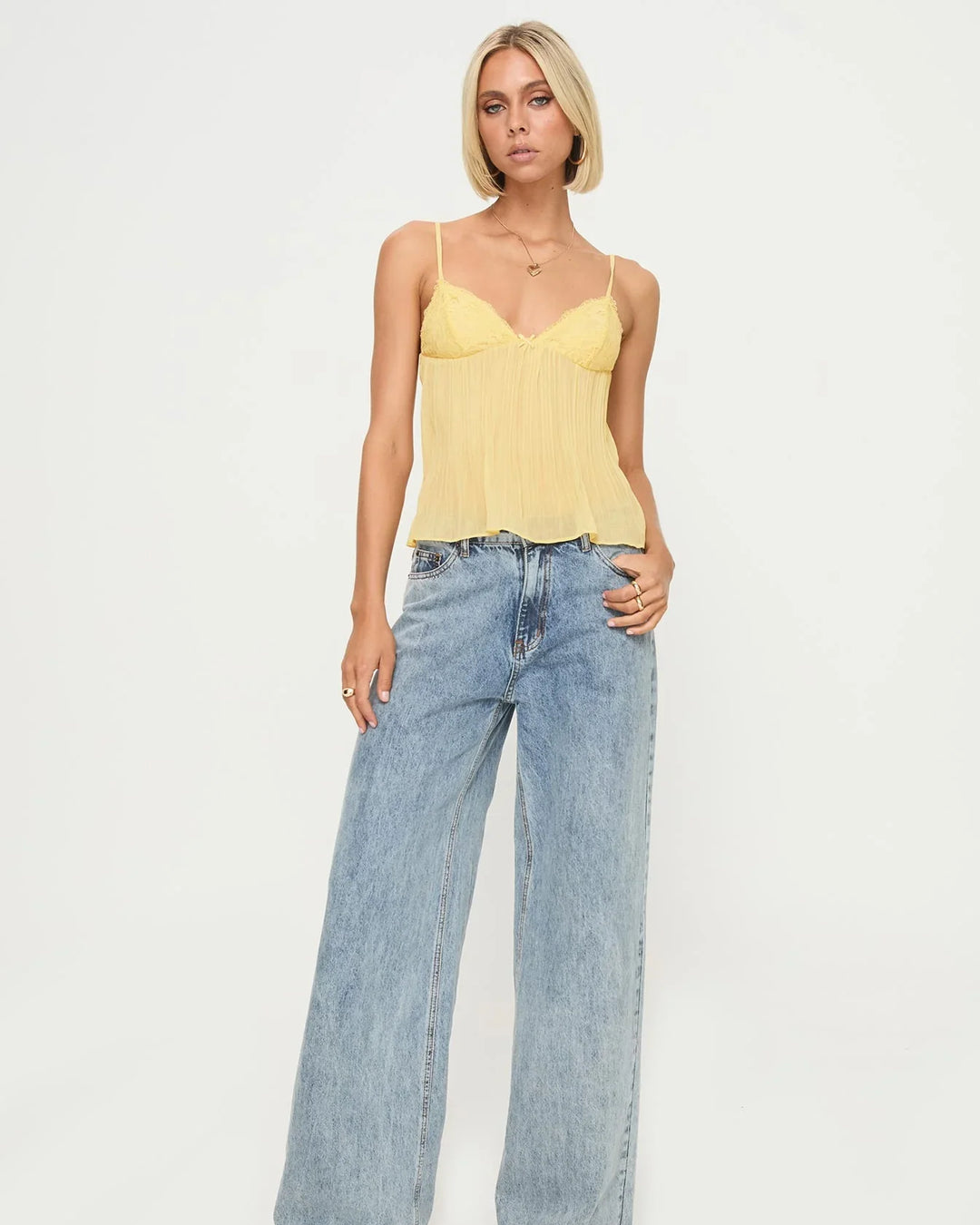 As alças finas e o decote delicado realçam o colo com sutileza. A renda trabalhada adiciona um toque de sofisticação, tornando a peça perfeita para diversas ocasiões.